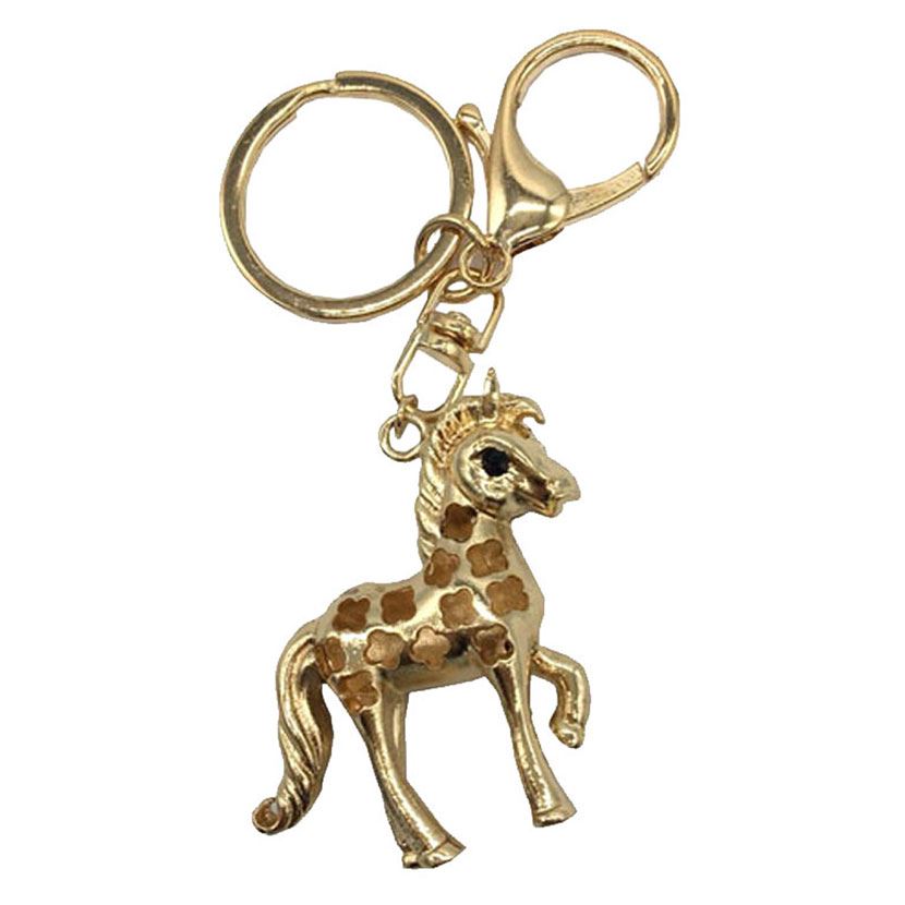 Glam up your keys! This gold-tone metal horse is jazzed up with a cluster of sparkling crystal gems and features a classic ring fastening.