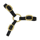Aids control over the pony in lead rein classes. This high-quality leather three-way coupling with brass buckles attaches to both bit rings and the back of the noseband to relieve pressure on the bit.