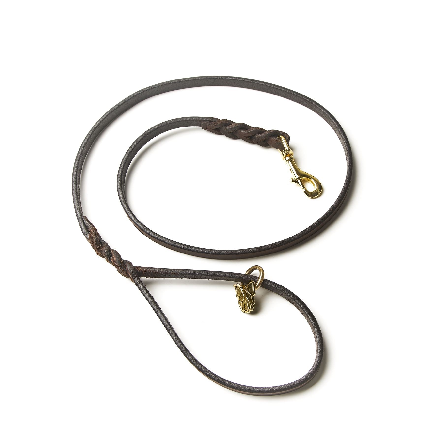 Dark brown and oiled to maintain the natural leather character the Digby & Fox braided dog lead features an attractive weave detail adds interest. Soft and comfortable in the hand, the lead is suitable for dog walks, training or general use. Finished with brass fittings for a quality feel. Length: 110cm, W. Small 0.8cm, Large 1.5cm. Matching collar available separately.