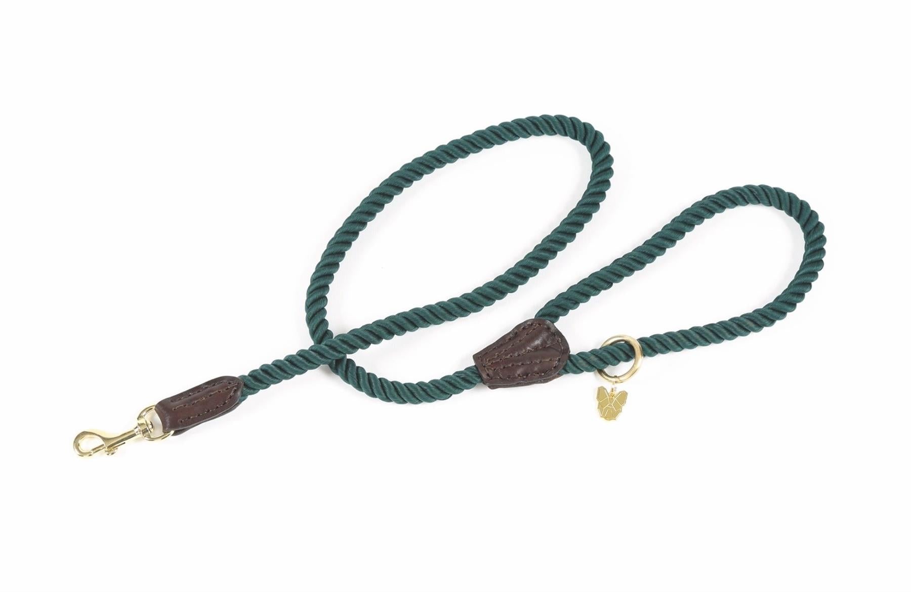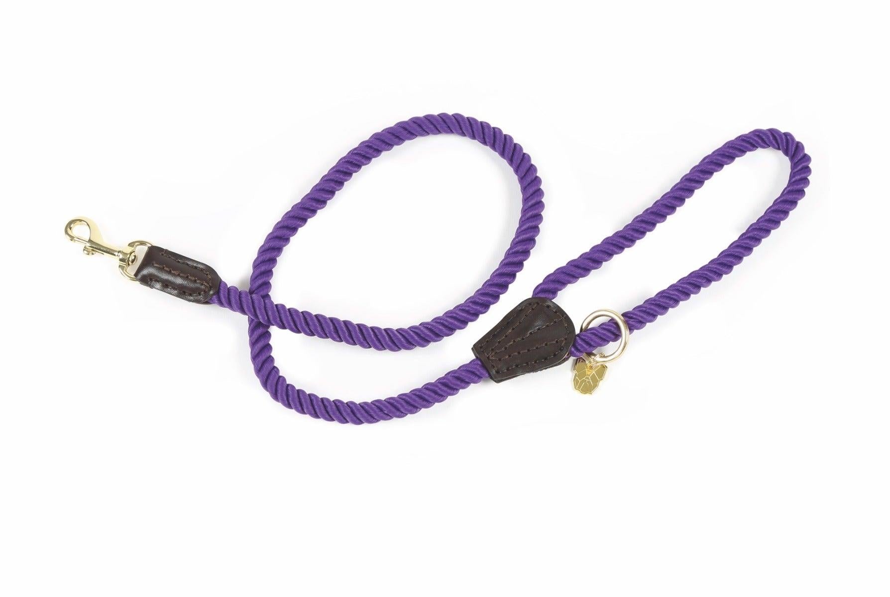 Ready for walkies! This flexible dog lead is made from soft twisted rope and available in a variety of bright colours! Brass ring, leather fittings, die cast Digby & Fox tag. Length: 110cm.