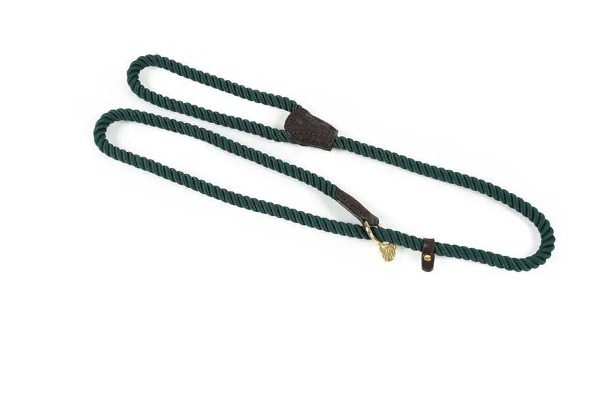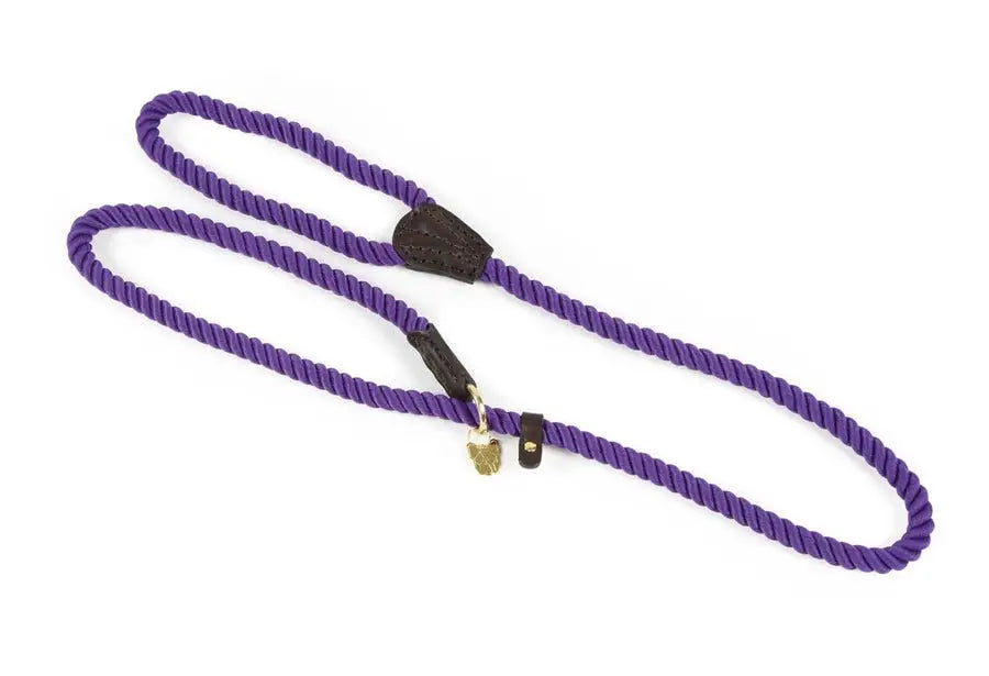 Ready for walkies! This flexible slip dog lead is great for on the go and is made from soft twisted rope and available in lots of fun colours. Brass ring, leather fittings, die cast Digby & Fox tag. Length: 147cm.