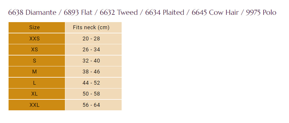 Pair it with a matching lead to create a harmonised look. Additionally, we offer coordinating belts, browbands, and headcollars to complete your horse riding gear. The collar comes in various sizes for a perfect fit on your dog's neck.