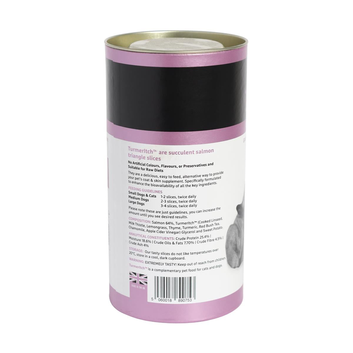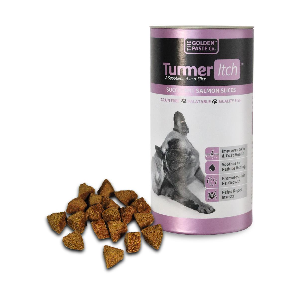 TurmerItch for Dogs�, succulent salmon triangle slices.