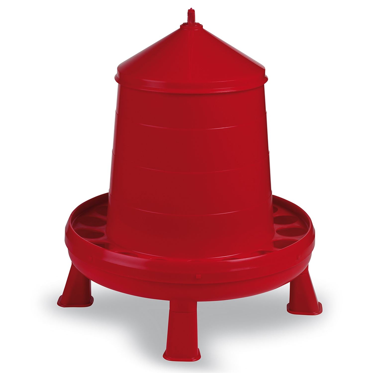 Tough and durable plastic feeder designed for chickens and game birds. The feeder hopper is filled from the top by removing the lid and it is semi-transparent to allow you to easily view the feed level. The base of the feeder features an anti-waste grille to help prevent food wastage. Comes with detachable legs to help keep the feed away from dirt and feathers. The 4kg feeder's height is 50.5cm and the diameter is 30cm.