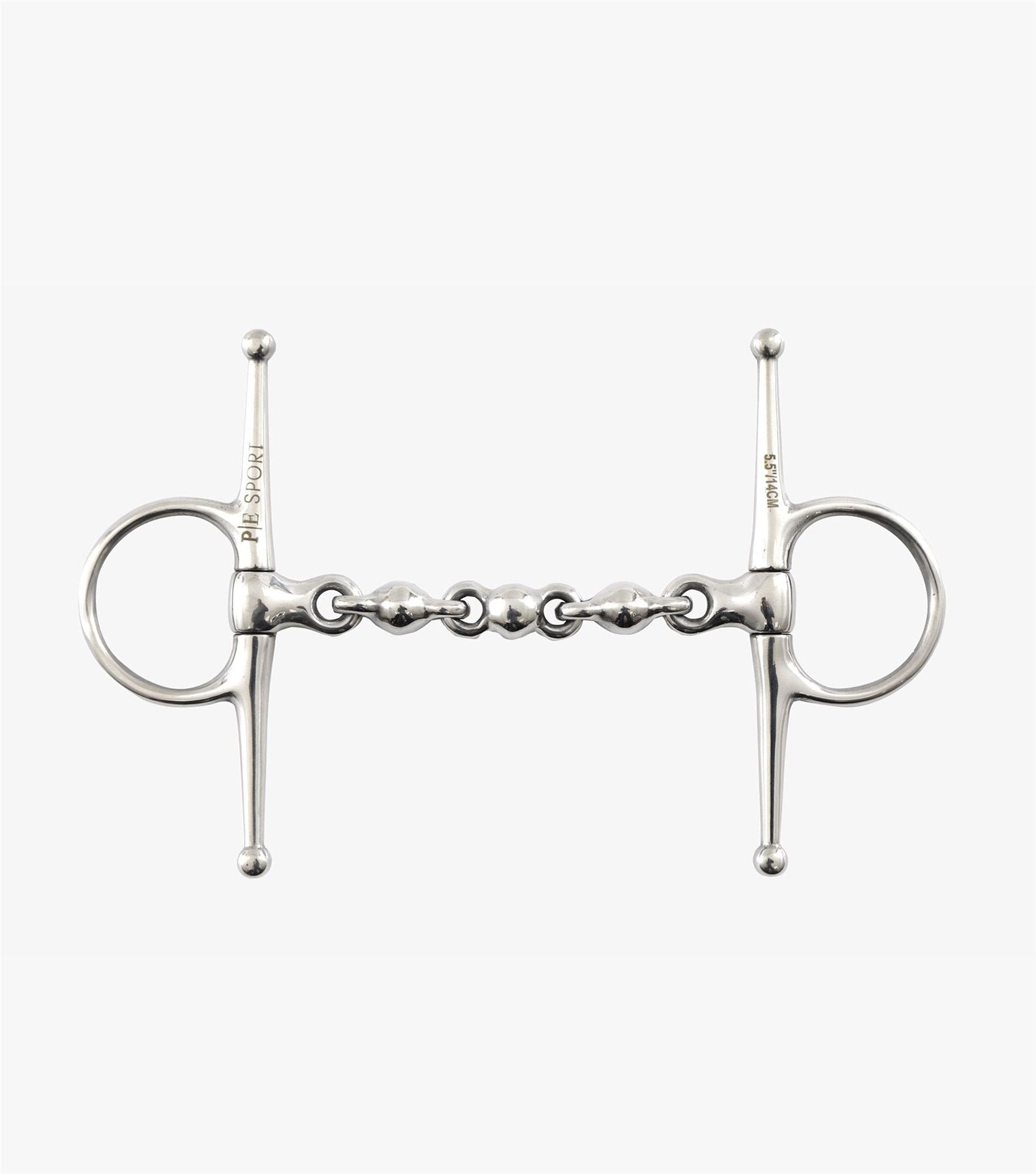 Full cheeks Stainless steel Waterford mouthpiece comprised of moving ball links Can help combat problems such as leaning, taking hold of the bit and jaw setting Ideally used by experienced riders Needs to be fitted 1/4" - 1/2" wider than standard This is NOT BD Legal Bit strength: Moderate