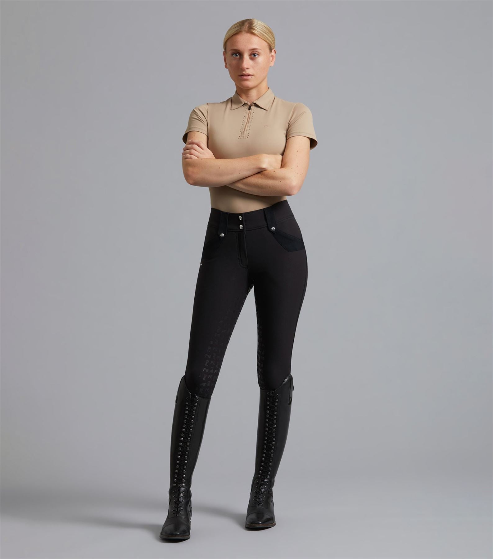When it comes to a blend of comfort and practicality, the Premier Equine Concerto Ladies Riding Tights are hard to beat. These tights offer a pull-on design, with a technical 4-way stretch fabric that moves with you. Featuring a moisture-wicking and breathable fabric, they're perfect for staying cool in warmer weather. The deep waistband and full seat of silicone gel ensure security in the saddle, while two phone pockets offer much-needed convenience for today's busy riders.