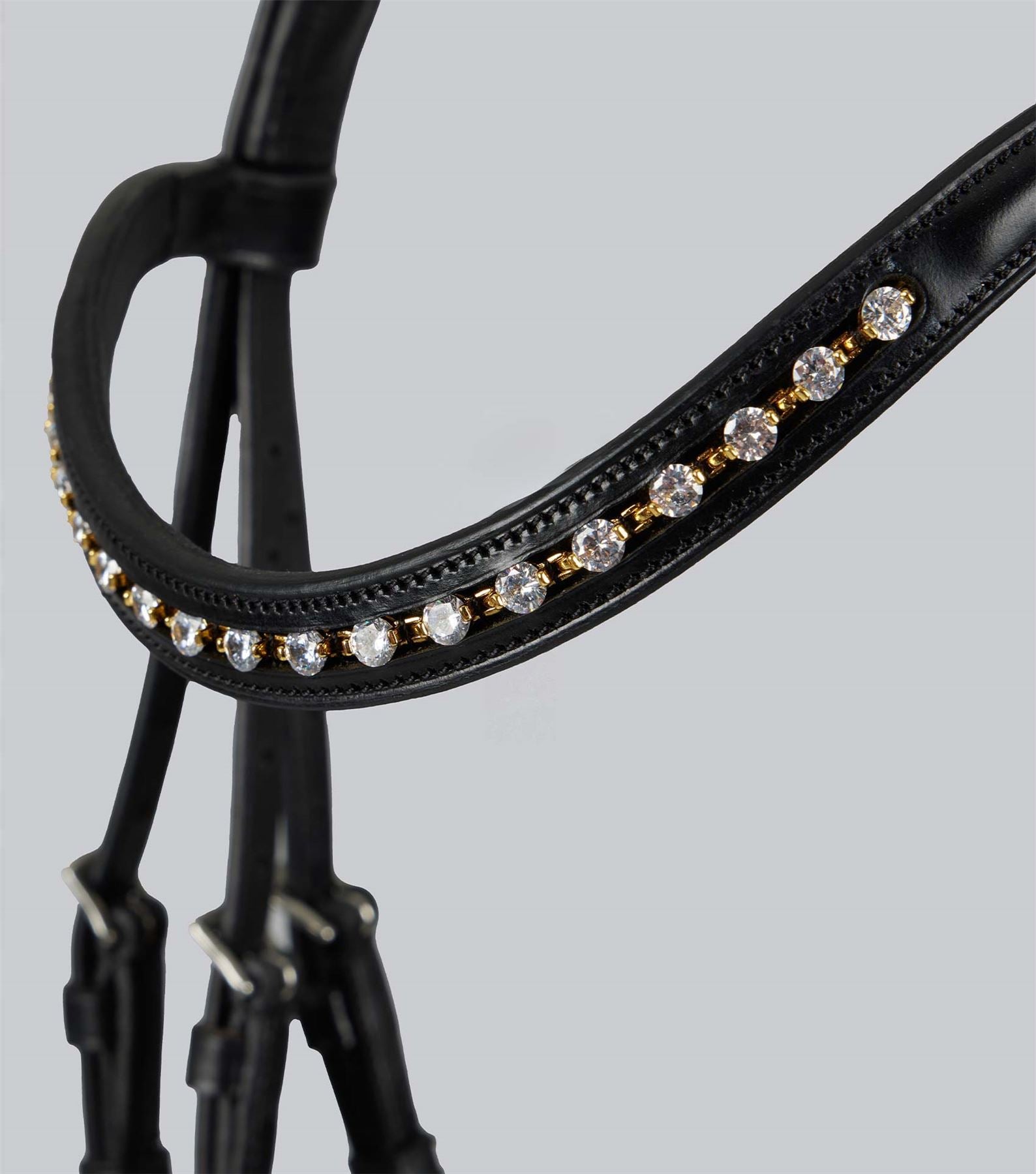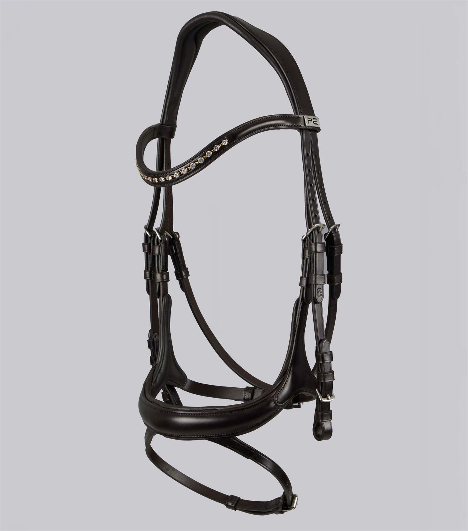 The Palazzo Anatomical Bridle is made from exquisite Italian leather, known for its superior quality and durability. The use of Italian leather adds a luxurious and prestigious element to the bridle, ensuring a stunning appearance and long-lasting performance. This fine material further elevates the overall craftsmanship of the bridle, making it a top choice for riders seeking both elegance and exceptional functionality. This beautifully crafted bridle is designed with both the horse�s comfort and the rider�s control in mind. It features an anatomically shaped headpiece and a softly padded noseband to ensure the pressure is distributed evenly across the horse�s head, reducing pressure points and increasing freedom of movement. The bridle�s elegant appearance and thoughtful design make it a popular choice for riders who value both style and functionality. The bridle is further enhanced by its exquisite diamant� browband, adding a touch of glamour and sophistication to the overall design. The shimmering diamant� detailing not only catches the eye but also adds a luxurious touch to the bridle. The browband�s elegant appearance complements the high-quality leather and thoughtful design of the bridle, making it a standout choice for all equestrians. The black colour of the Palazzo Anatomical Bridle adds a classic and sophisticated touch to its already elegant design. The deep black hue exudes a sense of timeless style and versatility, making it suitable for various equestrian disciplines and riding ensembles. Additionally, the black colour option offers a sleek and polished look that beautifully complements the exquisite Italian leather and sparkling diamant� browband, further enhancing the overall aesthetic appeal of the bridle. Equipped with a flash noseband, the Palazzo Anatomical Bridle adds an extra element of control and stability for your horse during training sessions. It also features a chrome PE badge, adding a stylish and modern detail to this exquisite piece of leatherwear. Designed with an anatomical headpiece and noseband, the Palazzo prioritises your horse�s comfort and provides a better fit for enhanced performance and overall well-being.