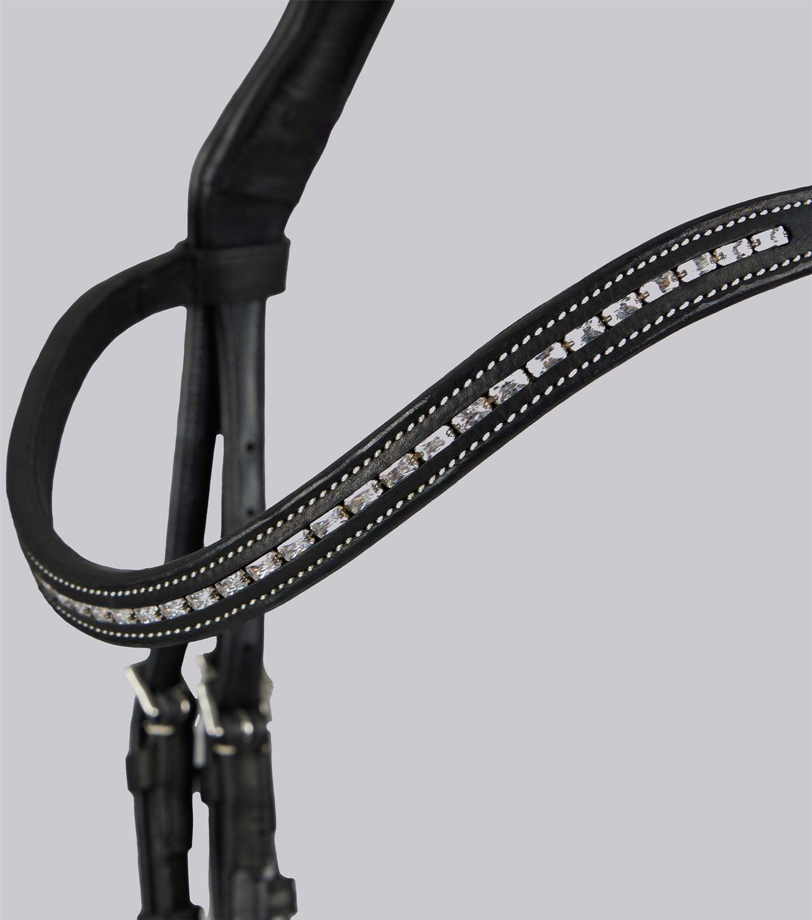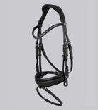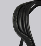 Crafted from exceptional German aniline leather, the Veneto Anatomical Snaffle Bridle is a true example of superior quality and craftsmanship. The use of aniline leather ensures that the bridle is not only durable and long-lasting but also remarkably supple and comfortable for the horse. The natural characteristics of aniline leather, including its luxurious feel and rich colour, further enhance the elegance and sophistication of this finely crafted bridle. With its premium, materials and meticulous construction, this bridle truly showcases the artistry of leather craftsmanship. This bridle is equipped with a padded headpiece and noseband for the horse�s comfort, as well as stainless steel hardware for durability. It provides precise communication between the rider and the horse. Its classic design makes it suitable for both style and functionality, thanks to its meticulous craftsmanship and attention to detail. The Veneto Snaffle Bridle features a stylish contrast stitching across the entirety of the structure, creating a sophisticated and eye-catching look. The contrast stitching adds a touch of elegance to the bridle, making it stand out in the show ring or during everyday riding. The meticulously executed stitching not only enhances the bridle�s aesthetic appeal but also adds to its overall durability and quality craftsmanship. The timeless black colour of the Veneto Snaffle Bridle adds a versatile look to its already impressive features. The classic shade is often favoured for its elegant appearance, adding a touch of sophistication to the overall rider ensemble, making it a popular choice for both everyday riding and competitive events. Adorned with a distinguished chrome PE badge on the browband, the Veneto Anatomical Bridle exudes sophistication and luxury. This subtle yet striking detail enhances the overall aesthetic appeal, making it an attractive choice for riders who appreciate fine attention to detail. The chrome PE badge serves a symbol of quality and craftsmanship, reflecting the meticulous design and construction of the bridle. Designed with a flash noseband, the Veneto Bridle provides additional stability and control while riding. The flash noseband helps to keep the horse�s mouth closed and encourages softness in the contact, beneficial for horses that require more support in maintaining consistent contact with the bit. This, along with the bridle�s overall design and craftsmanship, makes it a reliable choice for riders seeking both function and style.