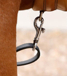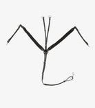 Italian leather jumping breastplate with running martingale attachment (removable) Elasticated sides provide increased comfort and less restriction Attaches to girth (with or without clip) and D-rings Adjustable using buckles at girth and D-rings Two additional D-rings on chest strap for lowering the martingale piece or attaching training aids High quality stitching Stainless steel buckles, clips and fixtures