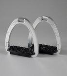 Engineered with our revolutionary double action technology, the PE Intego Duo Safety Stirrup allows, when actioned, the entire outside of the stirrup to open. This aids in the safe release of the foot from the stirrup. The snap-closure double hinge then returns to its original position, secured in place by the magnetic locking system. The release of this locking system is activated when pressure is applied in the event of a lateral fall. Instructions for use: The stirrups have been labelled �L� and �R� to avoid incorrect use: R=Right L=Left When in use, the L & R should face the rider. The PE logo should be visible when standing in front of the horse. When fitting the stirrups to the saddle, ensure the opening arm is closest to the knee roll. The L & R will be facing outwards when the stirrups have been run up the leathers. The opening arm should never be directed towards the horse�s ribs. Maintenance: The Intego Duo Safety Stirrups have a 100% aluminium construction which has been anodised to protect them from wear and tear. We advise to clean the whole stirrup, including the safety mechanism, with warm water only. It is important to check the opening mechanism before and after each ride and remove any dirt and debris which could prevent the safety release from opening correctly. If the stirrups are stored on the saddle, we recommend using the PE Stirrup Covers to help prevent any damage. Warnings: The stirrups must be fitted correctly to the saddle for the safety mechanism to work properly. The double action arm snaps back with force, be careful when handling to avoid injury. Do not disassemble. Do not wear any clothing or footwear that may prevent the stirrup to work properly.
