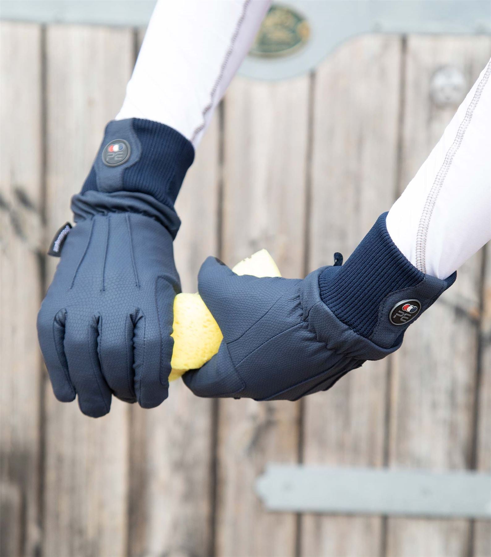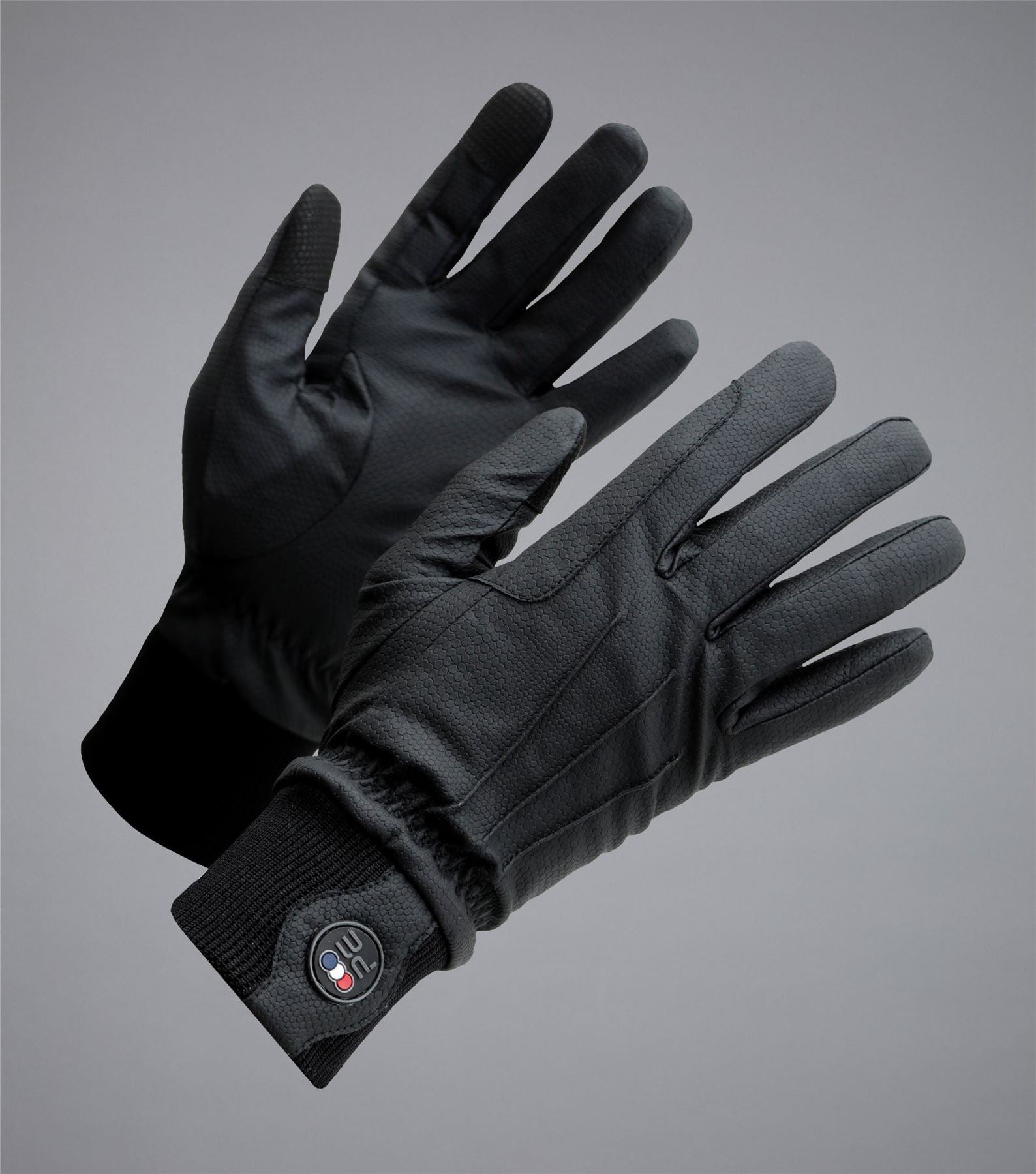 Engineered with soft synthetic leather these riding gloves are entirely waterproof to keep your hands warm and dry when riding. Featuring a touch screen panel you can easily use your touchscreen phone without the need to remove your gloves � perfect for those cold mornings or chilly evenings. Offering an exquisite hand feel these gloves have exceptional grip for handling the reins � ideal for if the reins become wet. Communicate precisely with your horse with a Thinsulate lining for warmth without compromising contact with the reins. Classically designed with a simple pull-on stretch cuff these riding gloves feature integrated elastic along the central outer hand for unrestricted flexion.