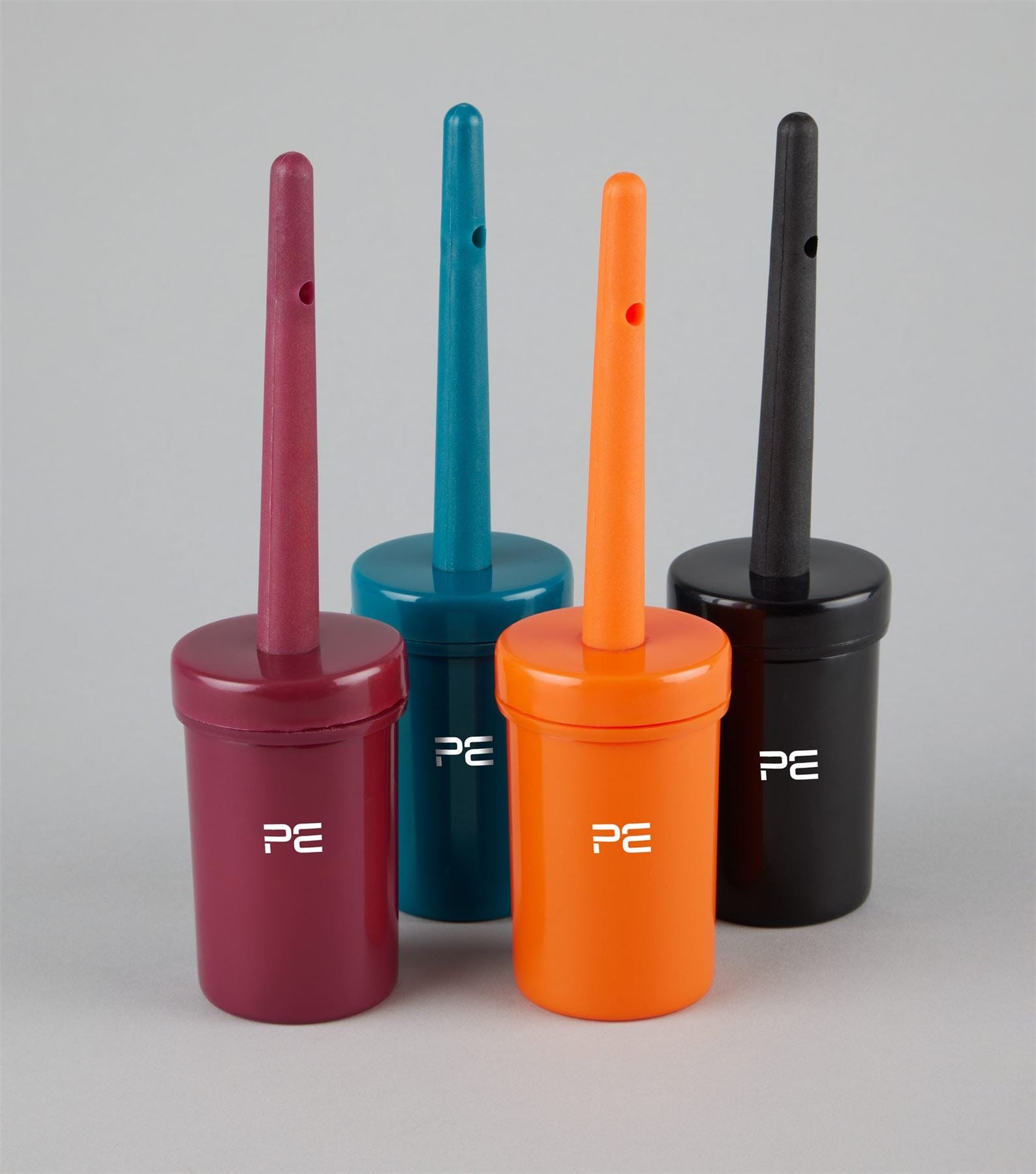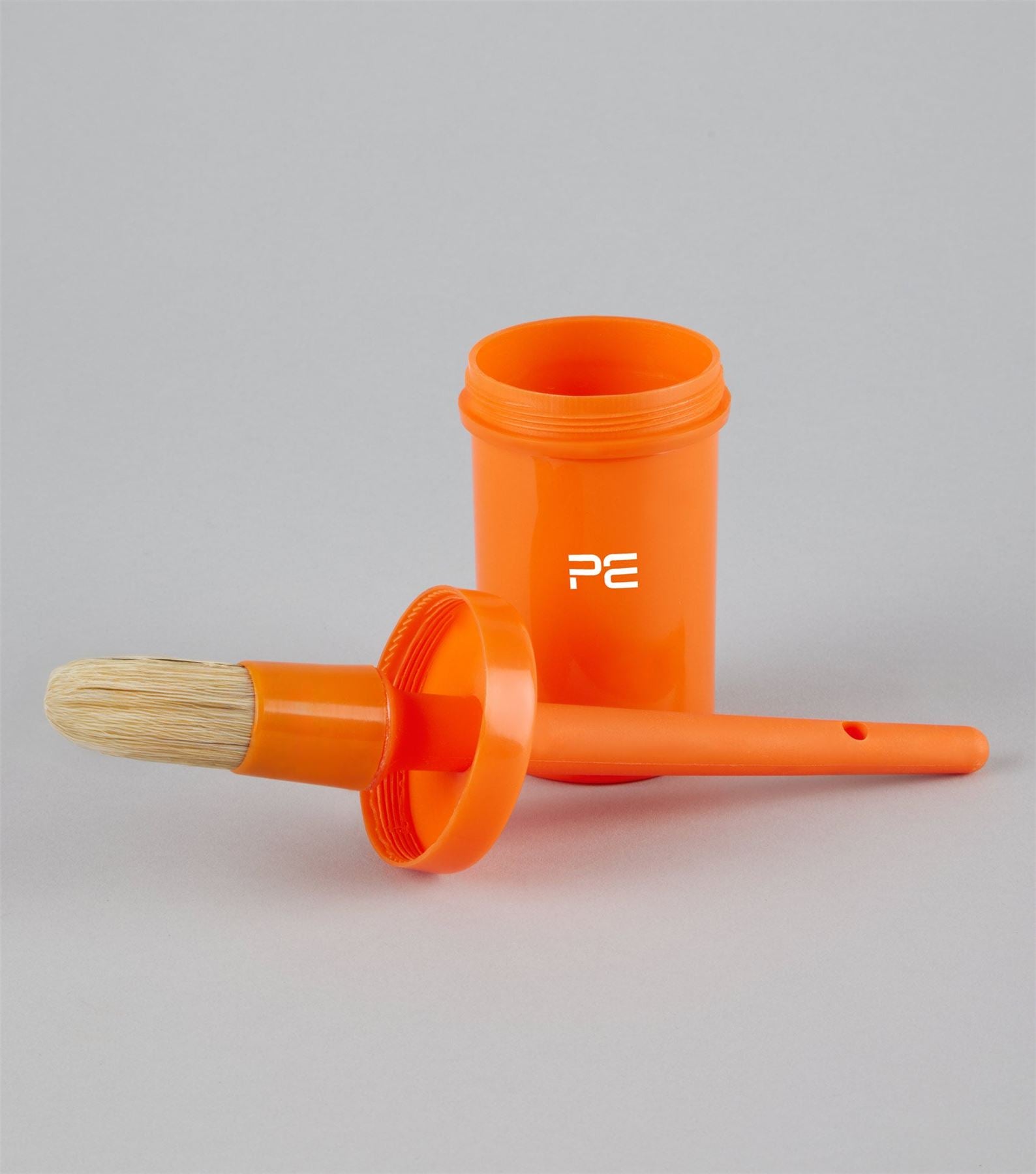 Screw top lid secures the brush within the contents of the pot. Handy for shows or can be used daily at home, just add your favourite hoof ointment/oil.