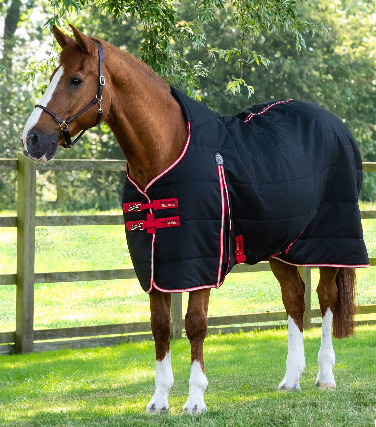 600D diamond weave polyester outer 200g Thermo bonded filling Highly breathable Forward cut neckline with integrated wither pads, providing pressure relief No neck cover attachments Extra high elasticated shoulder gusset (British design registration 4 010 772) Compatible with Lucanta Liners Neoprene wither pad Quick release chest clips Antibacterial & anti-static breathable polyester lining Deep cut pattern Cross surcingles Self-righting Padded tail flap Stainless steel hardware PVC coated tail strap The Lucanta Demi Stable 200 comes inside a complimentary, reusable zip-fastened storage bag