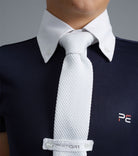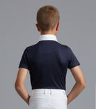A sophisticated boy's competition show shirt engineered with technical 4-way stretch pique jersey which boasts high breathability and moisture wicking properties, ideal for keeping cool and comfortable in the show ring. Combined with the technical body of fabric is a classic cotton poplin, button-down straight-point collar and strategically placed tie loop. A smart, classically styled boy's short sleeved show shirt finished with flattering seam lines and subtle PE branding on the chest. Don't forget to take a look at our hard wearing and stylish kids breeches. For a long sleeve alternative, please see the Mini Giulio Show Shirt.