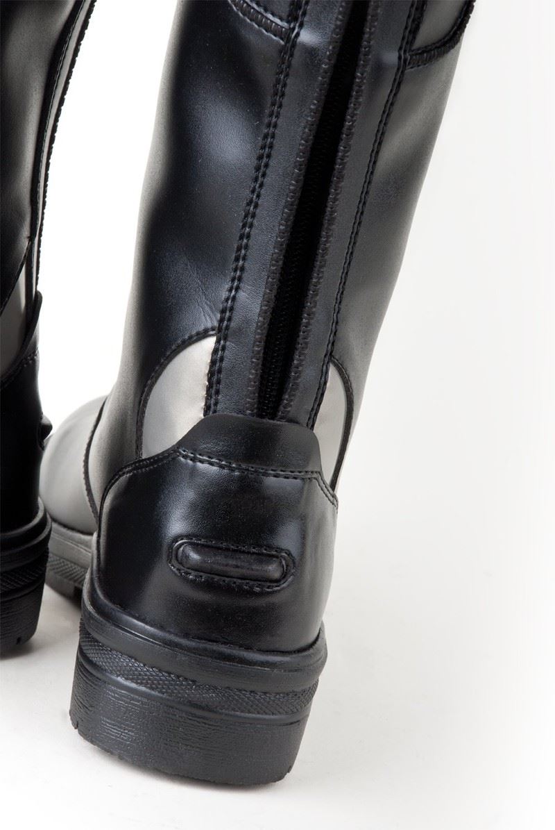 Shop now at Just Horse Riders for the Rhinegold Nebraska Synthetic Long Boot. A perfect blend of style and functionality, these boots are crafted from a non-peel synthetic material and come fully lined for added comfort. The design features a full-length zip at the back, a tab closure on the side, and an elasticated rear panel, making them adaptable to various leg shapes and providing increased flexibility when riding.