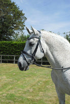 Finest quality supple Italian leather is used for this range. Anatomically designed headpiece, padded and shaped to relieve pressure on ears. Noseband shaped to relieve pressure with double adjustment for perfect fit. Wave browband sits comfortably with the shape of the brow. All with 'softee' leather padding. This bridle also benefits from a double ended throat latch for adjustment on both sides. Includes smooth feel rubber reins with stitch detail. Anatomically designed Shaped noseband to relieve pressure Double adjustment for perfect fit Wave browband Handcrafted from Italian leather with stainless steel fittings Includes smooth feel rubber reins with stitch detail