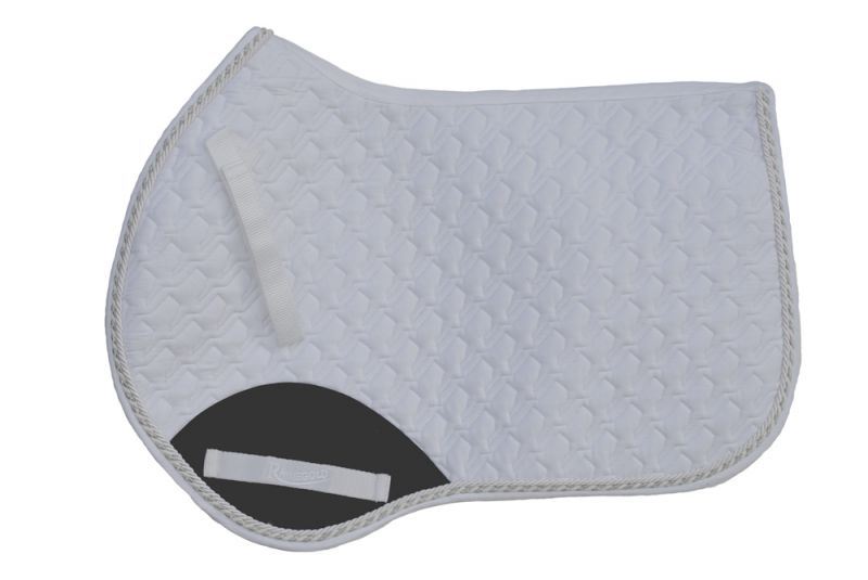 With a PU leather girth protection area, the classic close-contact cut from Rhinegold is designed in a modern European style. With a high cut wither, touch tape securing tabs and dynamic swept back design . These saddle pads look very sleek and professional with a distinct quilted pattern and twin rope binding. A densely padded saddle cloth to offer comfort and protection.Lined with air-wick breathable material. High wither, less pressure Dense padding for protection and comfort Distinct embroidery detailing Pu leather girth protection patch
