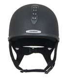 Junior X-Air Helmet Plus has a lightweight injection moulded ABS shell. Durable painted acrylic sanded finish and a 4-point heat formed synthetic suede harness. British PAS 015 2011, VG1, ASTM F1163-15, British Kitemarked to PAS 015 2011.