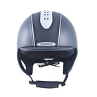 Revolve Vent-Air MIPS Peaked Helmet has a low-profile ventilated airflow system, MIPS technology, synthetic leather finish, pearlised - patent piping detail and contrast silver vent. Removable crown comfort padding in breathable Hi-Tech microfibre (liners are available and can be purchased separately) British PAS 015 2011, VG1, ASTM F1163-15, British Kitemarked to PAS 015 2011.