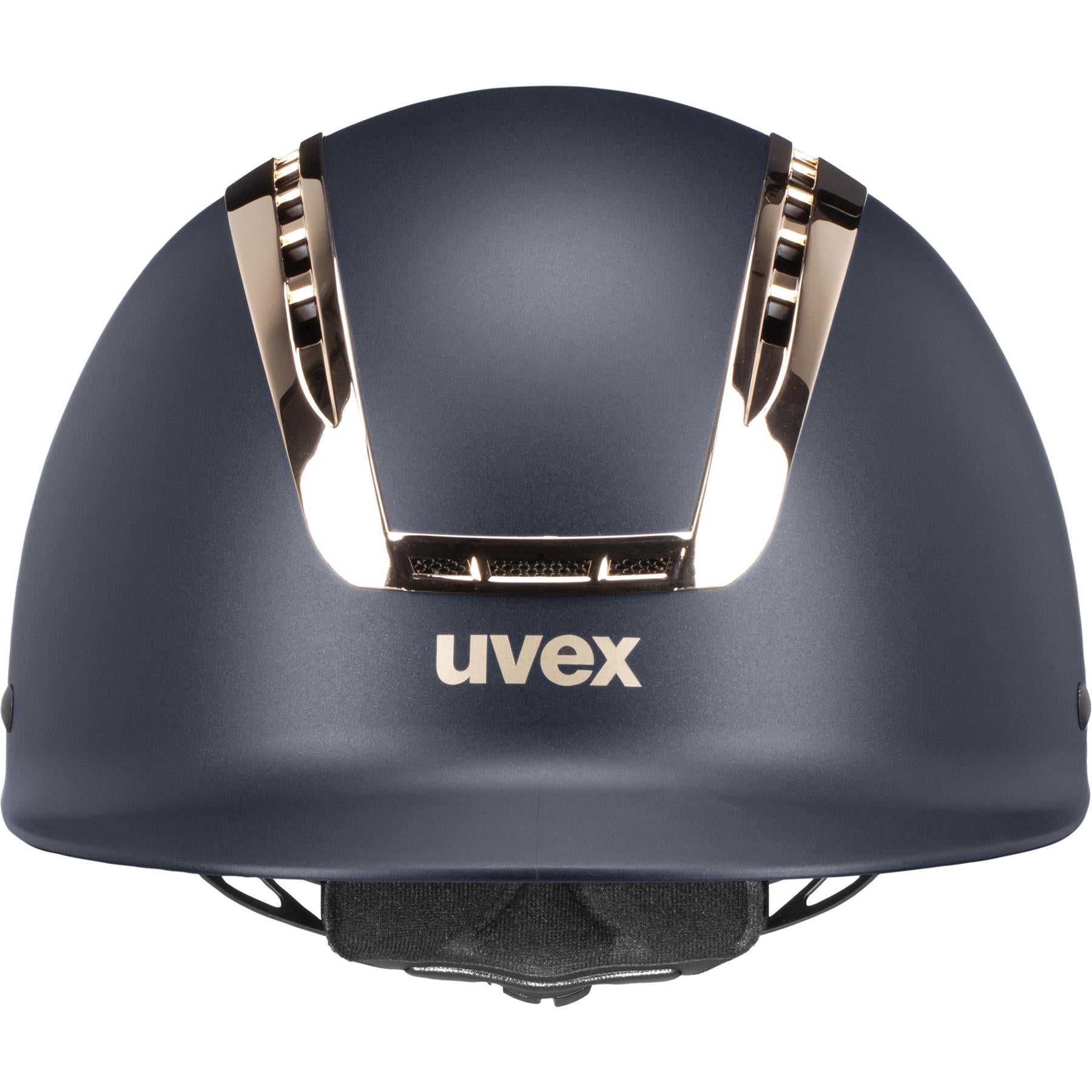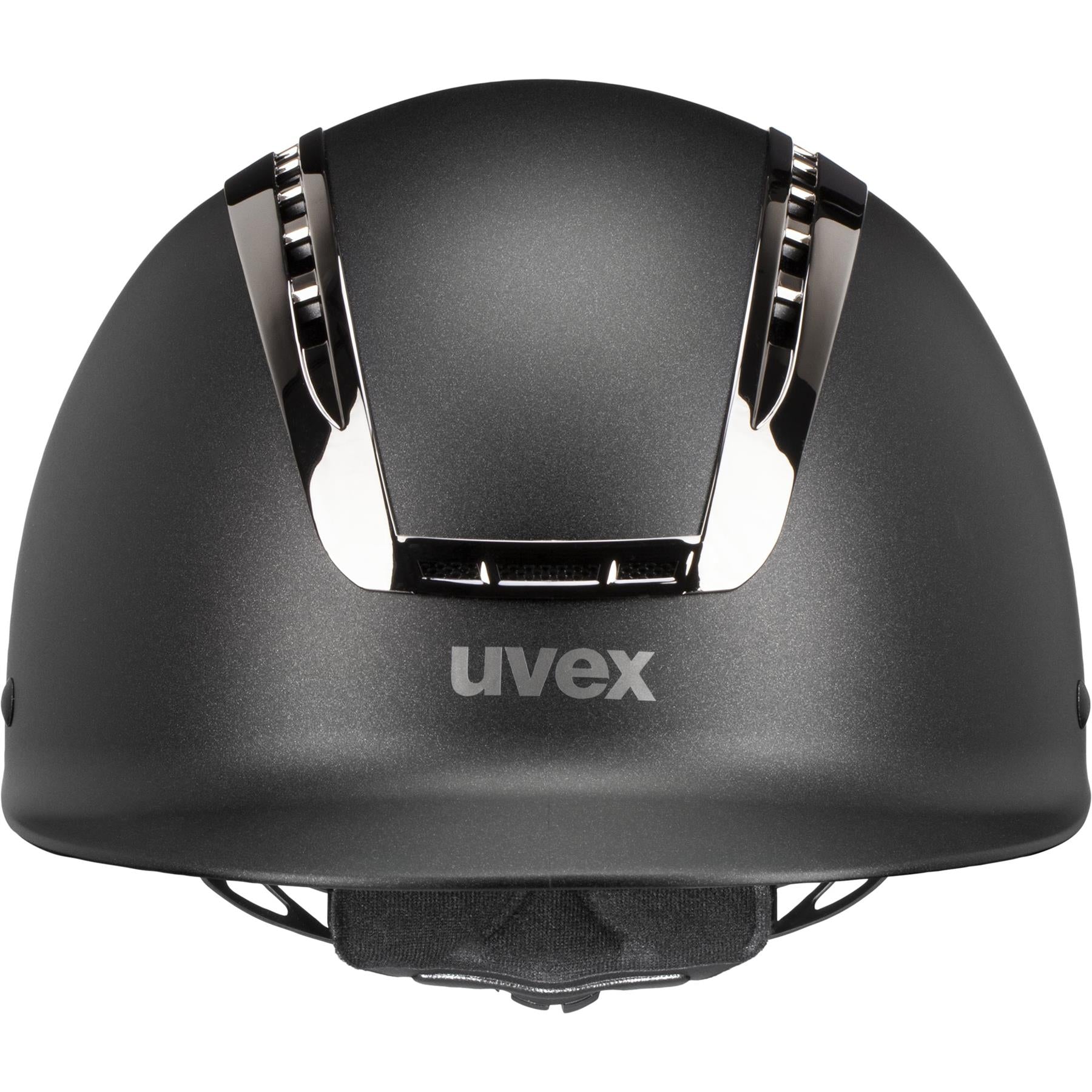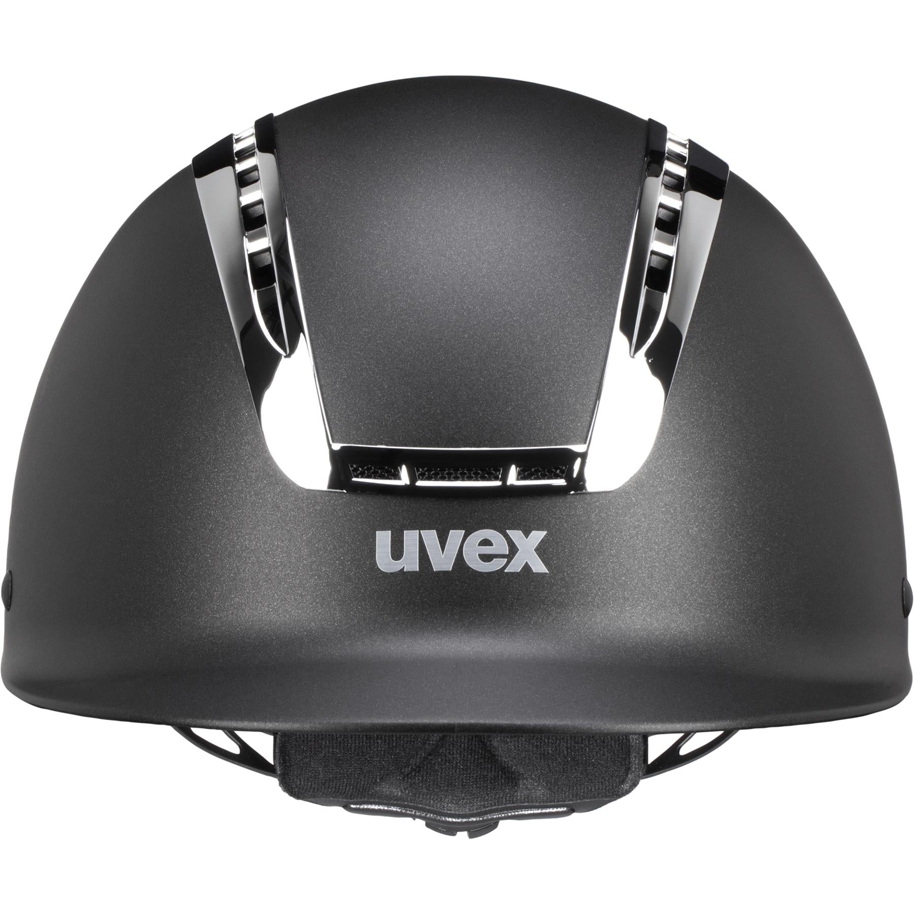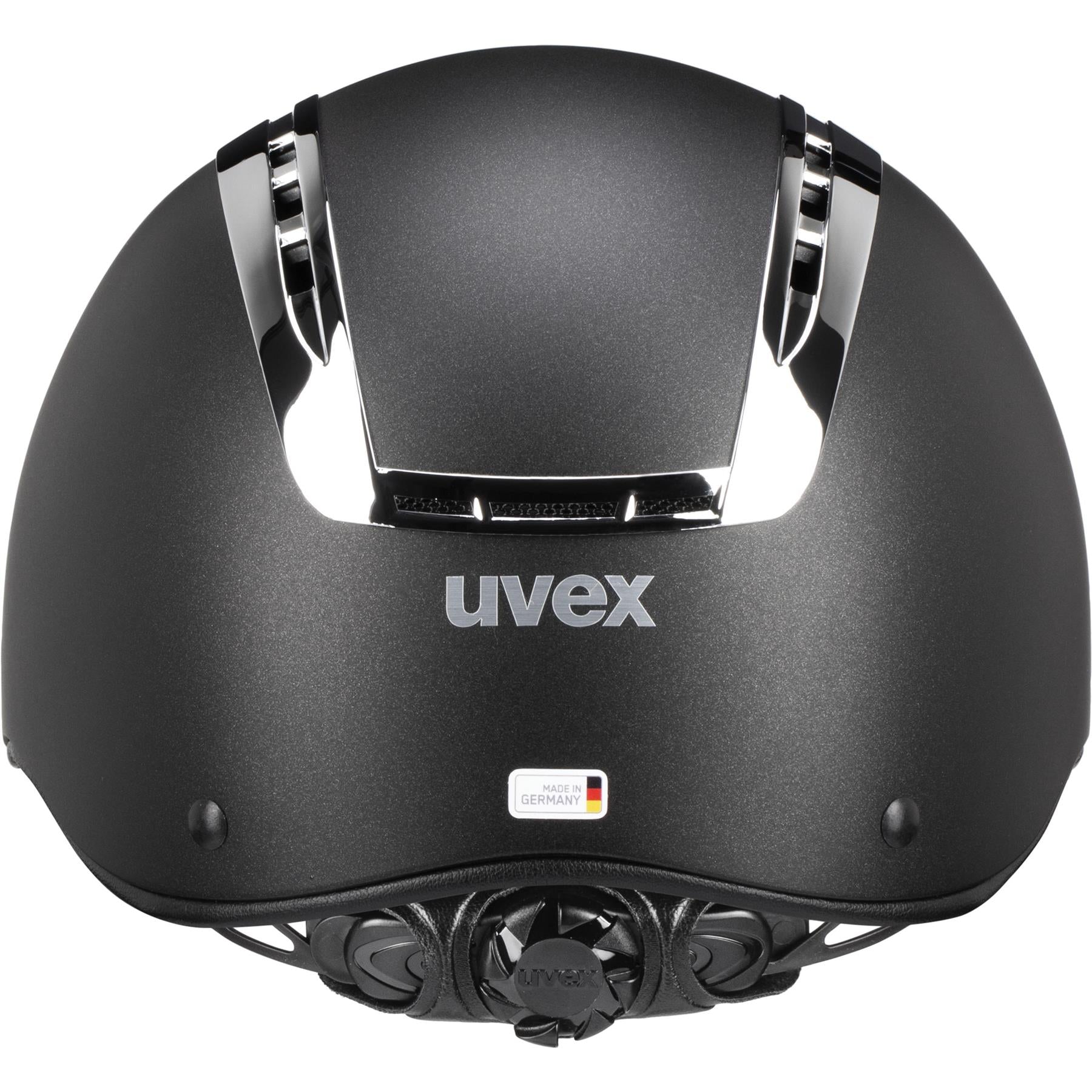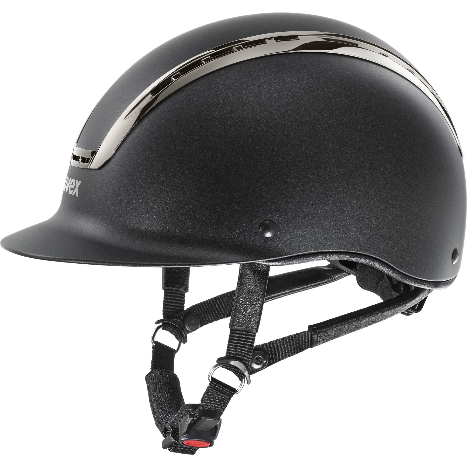 The uvex suxxeed chrome combines sporty functionality, safety and comfort with elegant design. Its special feature is the subtle combination of matt-finished helmet shell and glossy chrome frame. Clean, sporty and flamboyant - that's the uvex suxxeed chrome. Its striking design mix featuring a matt finish for the helmet shell and distinctively glossy chrome frame creates a timeless look, causing this classic among riding helmets to shine in a new light. The robust hard-shell helmet has an effective ventilation system and conveniently adjusts in height and width to fit the head thanks to the established 3D IAS system. Especially developed for riders, the breathable liner guarantees an especially high level of comfort for the wearer and can be removed for cleaning.