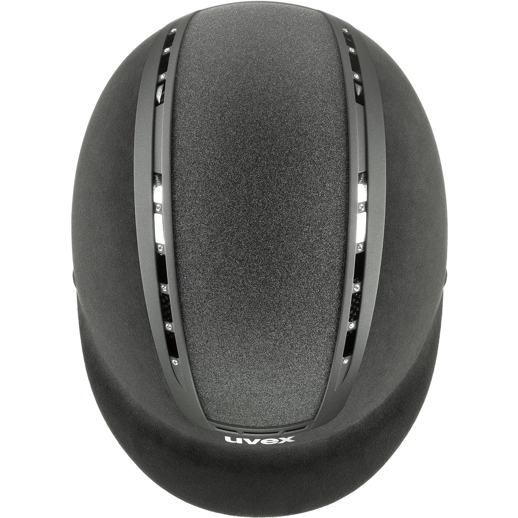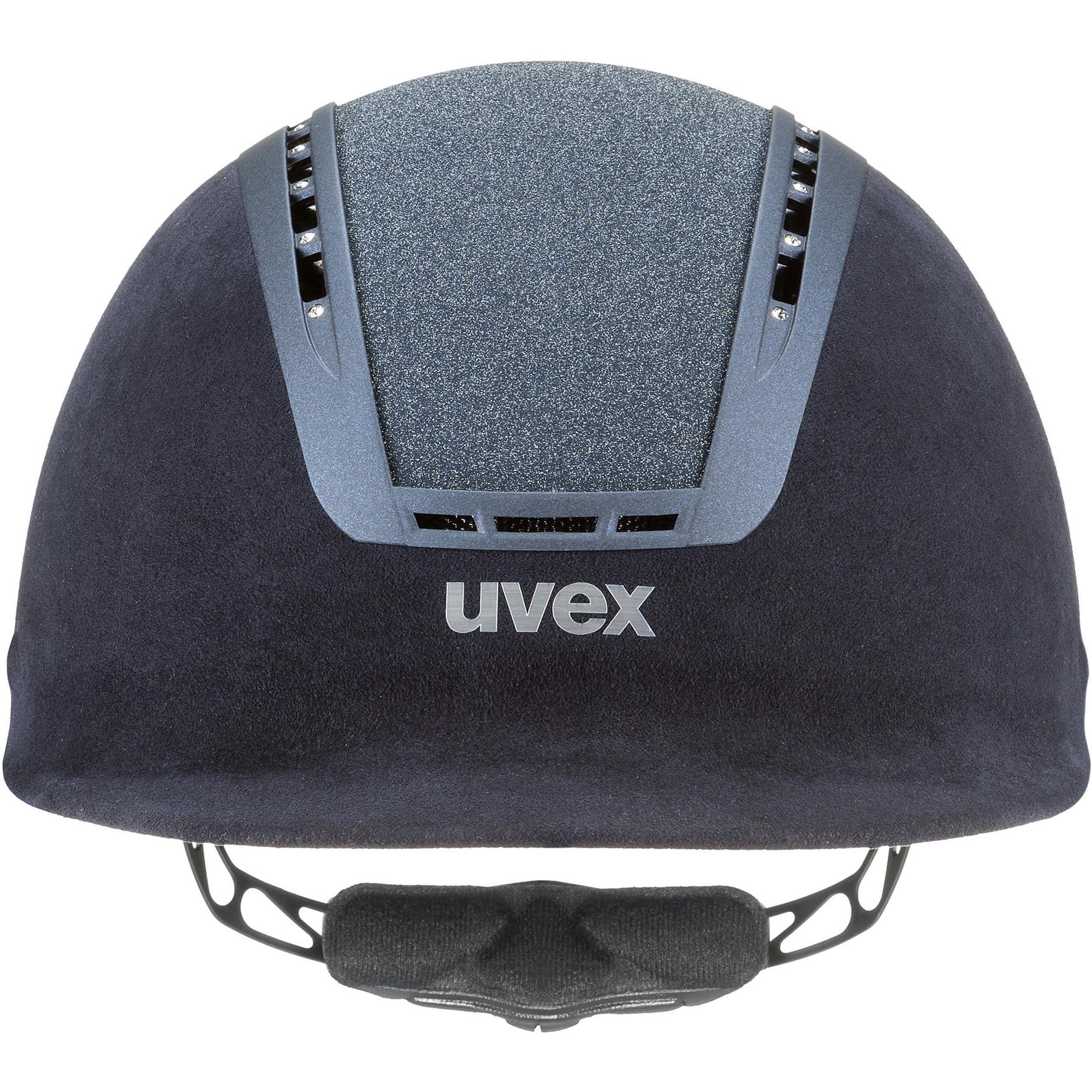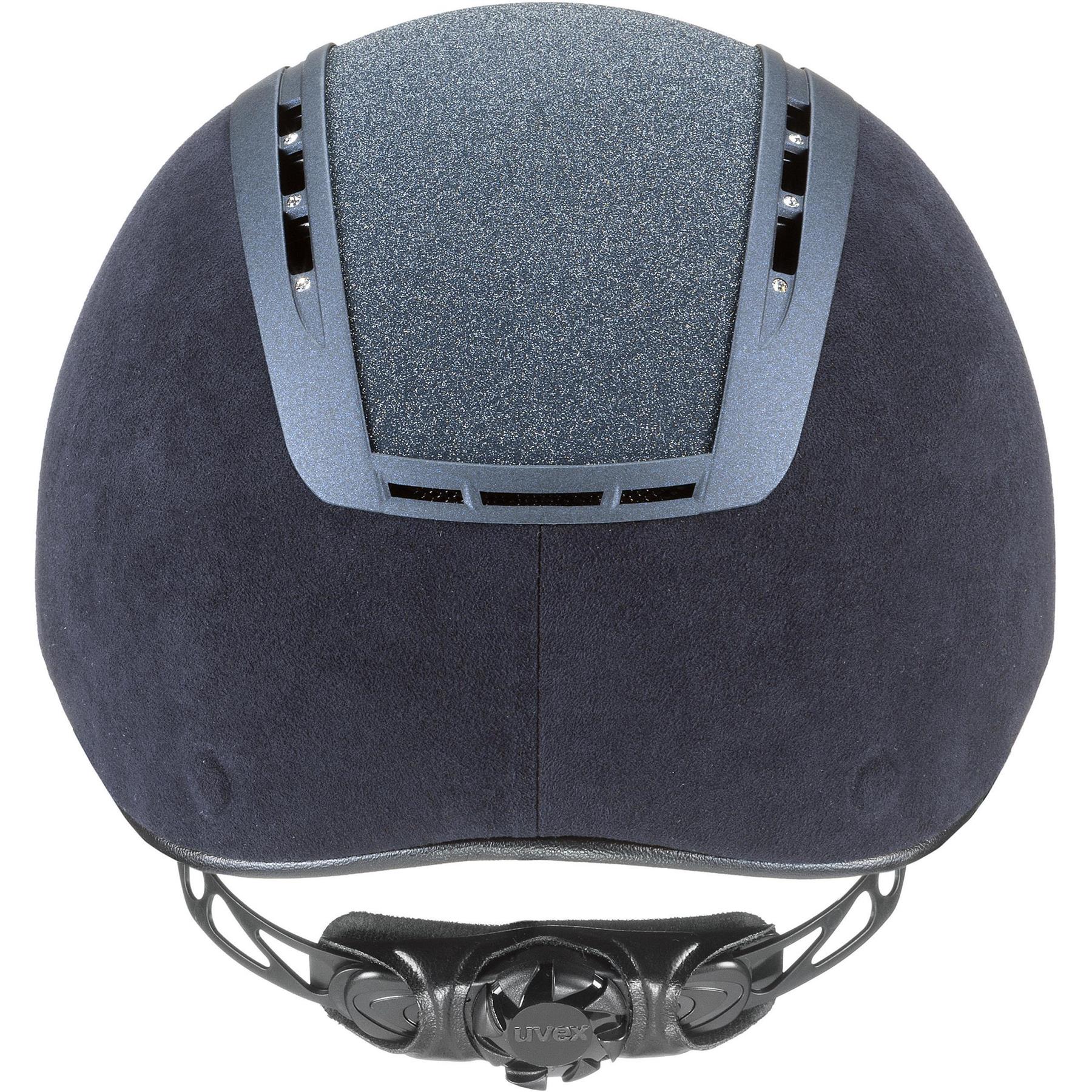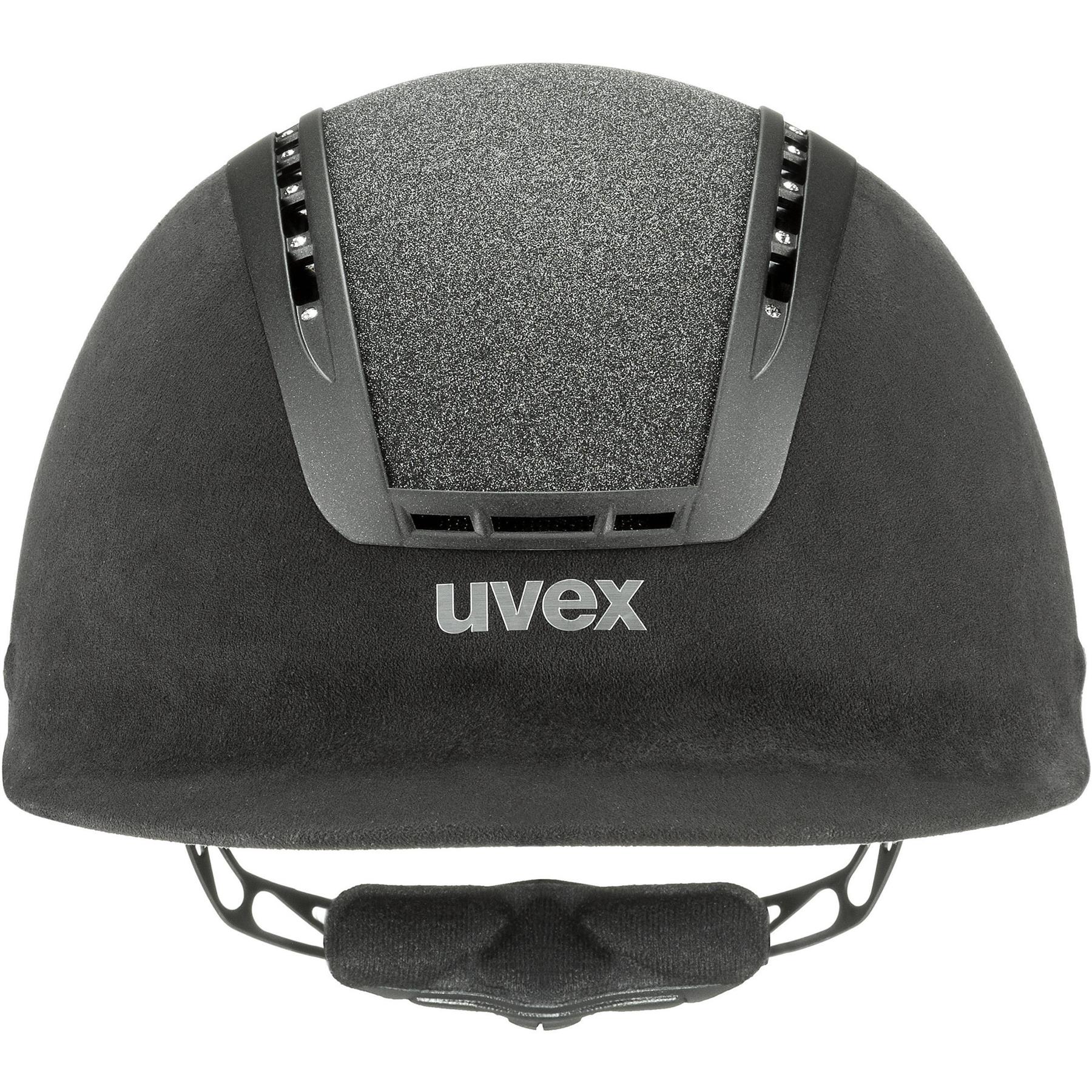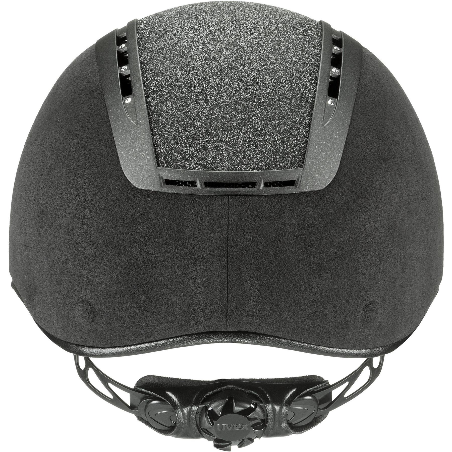 This riding helmet comes with sophisticated Swarovski® crystals paired with black velour effect. It has an excellent ventilation and this riding helmet is of course suitable for spectacle wearers. The riding helmet has an Alcantara helmet cover. The new uvex suxxeed glamour riding helmet, from the successful dressage helmet range, looks just as elegant as the classic, top hat shape, but offers also comfortable protection. Safety awareness is high in this discipline, riders want protection in training and in competition. The new R-FAS (Ring Fast Adapting System) guarantees even more stability with its steel ring on the webbing strap.