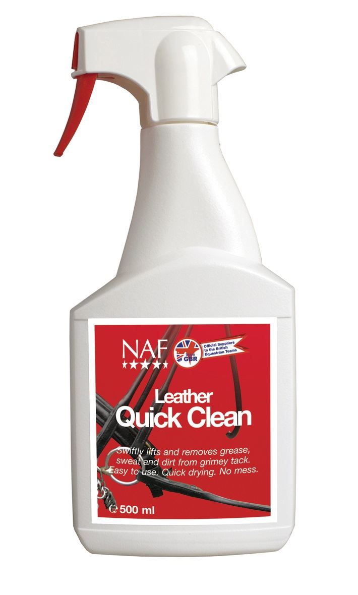 Shop now for the NAF Leather Quick Clean at Just Horse Riders. This efficient tack cleaner from NAF takes the hard work out of maintaining your leather goods. Simply spray it onto the dirty leather, and watch as it effortlessly removes grease, sweat, and dirt. For heavily soiled tack, let it soak on the leather's surface for a few minutes before wiping off. It dries quickly, ensuring that your leather goods are ready for use in no time. Importantly, it won't damage stitching or cause excessive drying out. It's formulated with blended natural oils, enhancing the longevity and quality of your leather. With our quick dispatch and delivery, it's never been easier to keep your leather goods in top condition. Any questions? Just reach out to our high-quality customer service team at Just Horse Riders Contact.