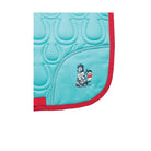 This breathable saddle pad from the Thelwell Collection is ideal for any pony lover! Featuring horseshoe quilting for both style and comfort, this pad also has red detailing, including the binding and girth straps. Cute �The Greatest� Thelwell cartoon finishes off the pad perfectly and matches with the rest of the collection.