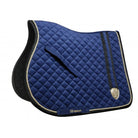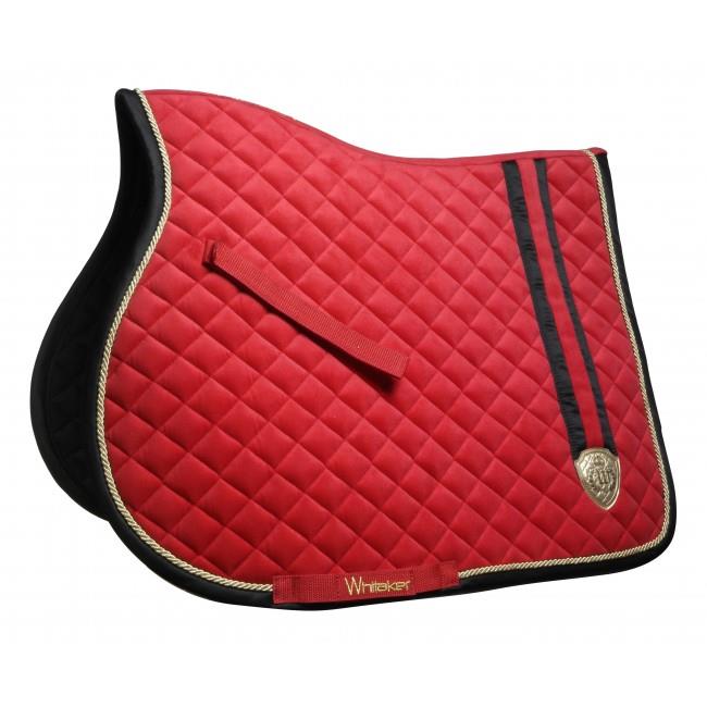 Harewood Velvet Crest Saddle Pad Soft velour upper, 5mm foam and 200g fill, contrast black satin binding, black satin and tonal velour stripe with 3D gold badge, subtle diamond quilting, gold rope detail.