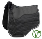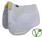 Cotton outer with faux fur trim and shock absorbing non-slip panel. Touch tape girth placement straps and Anti-rub girth panel. Shock absorbing non-slip saddle panel 100% Cotton outer and lining 100% Faux fur gives support and alleviates pressure points Rolled edges and padded wither for comfort Anatomically designed for a perfect fit Beautifully finished with a distinct quilting pattern and soft bindings. Price differs to catalogue due to increased costs
