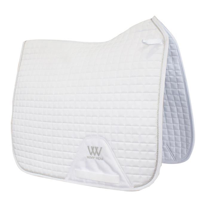Woof Wear�s Dressage Saddle Cloths have a high wither design and have been shaped to fit both the contours of the horse and modern saddles. Made from no-rub Polycotton and features Girth strap separation loops to keep your horse comfortable. Designed to match with the Colour Fusion collection Riders love the fit of Woof Wear�s saddle cloths which feature: Anatomic shaping with high wither design Soft and durable Polycotton fabric with silver rope binding Girth strap separation loops D Ring attachments Durable Ballistic Nylon girth pad