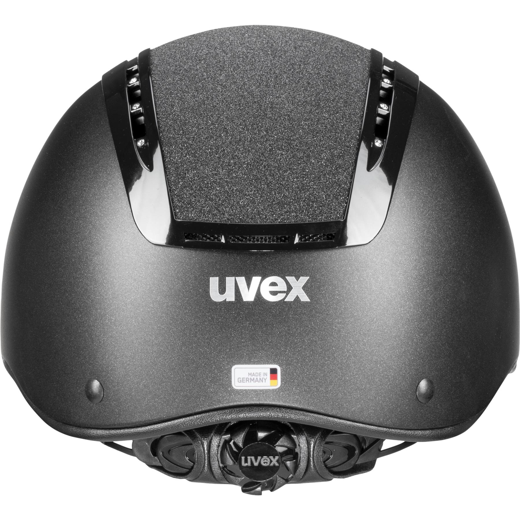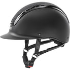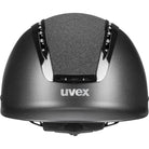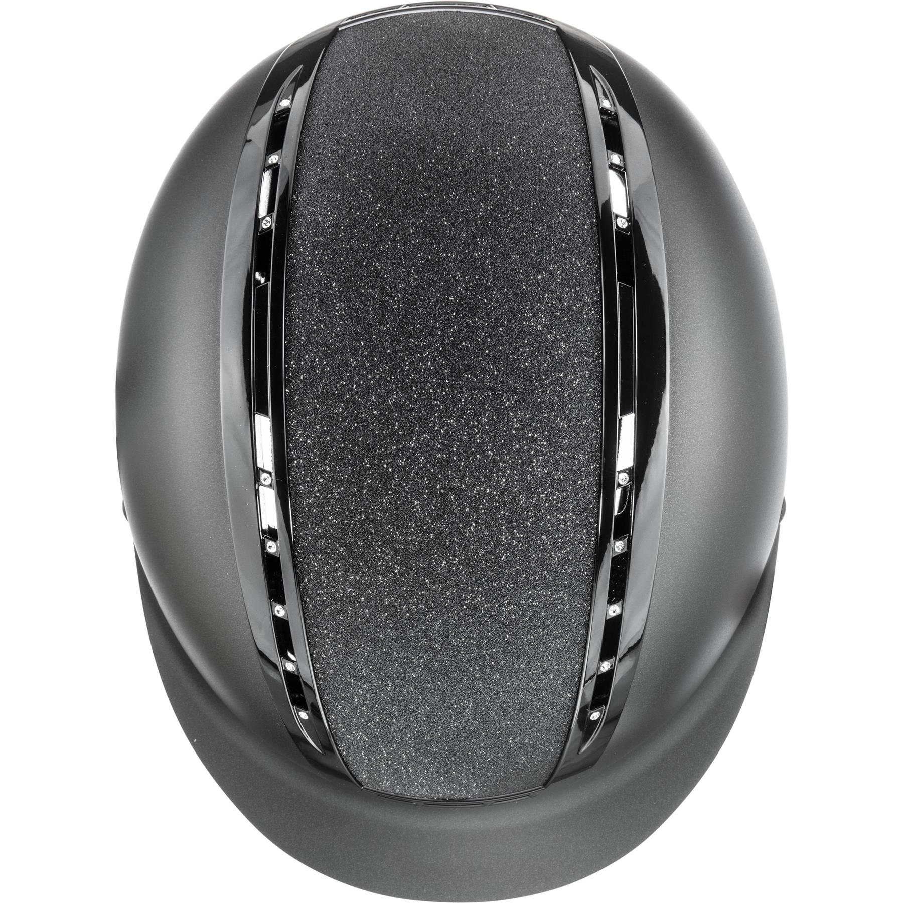 The uvex suxxeed starshine is the epitome of sporting elegance. Embellished with sparkling glitter and a shiny frame inset with Swarovski® crystals, the safe hard-shell helmet will become the highlight in any riding outfit. The uvex suxxeed starshine combines sporting flair with glamour. The refined mix of matt finished design elements attracts attention and highlights the luxurious character of the sporty riding helmet. Flamboyant use of glitter surrounding the high-gloss frame inset with Swarovski® crystals makes the uvex suxxeed starshine a real eye-catcher. Despite its extravagant appearance, the robust hard-shell helmet guarantees first-class performance. Supreme safety, extreme comfort and outstanding climate control at all times are additional standout features of the uvex suxxeed starshine.