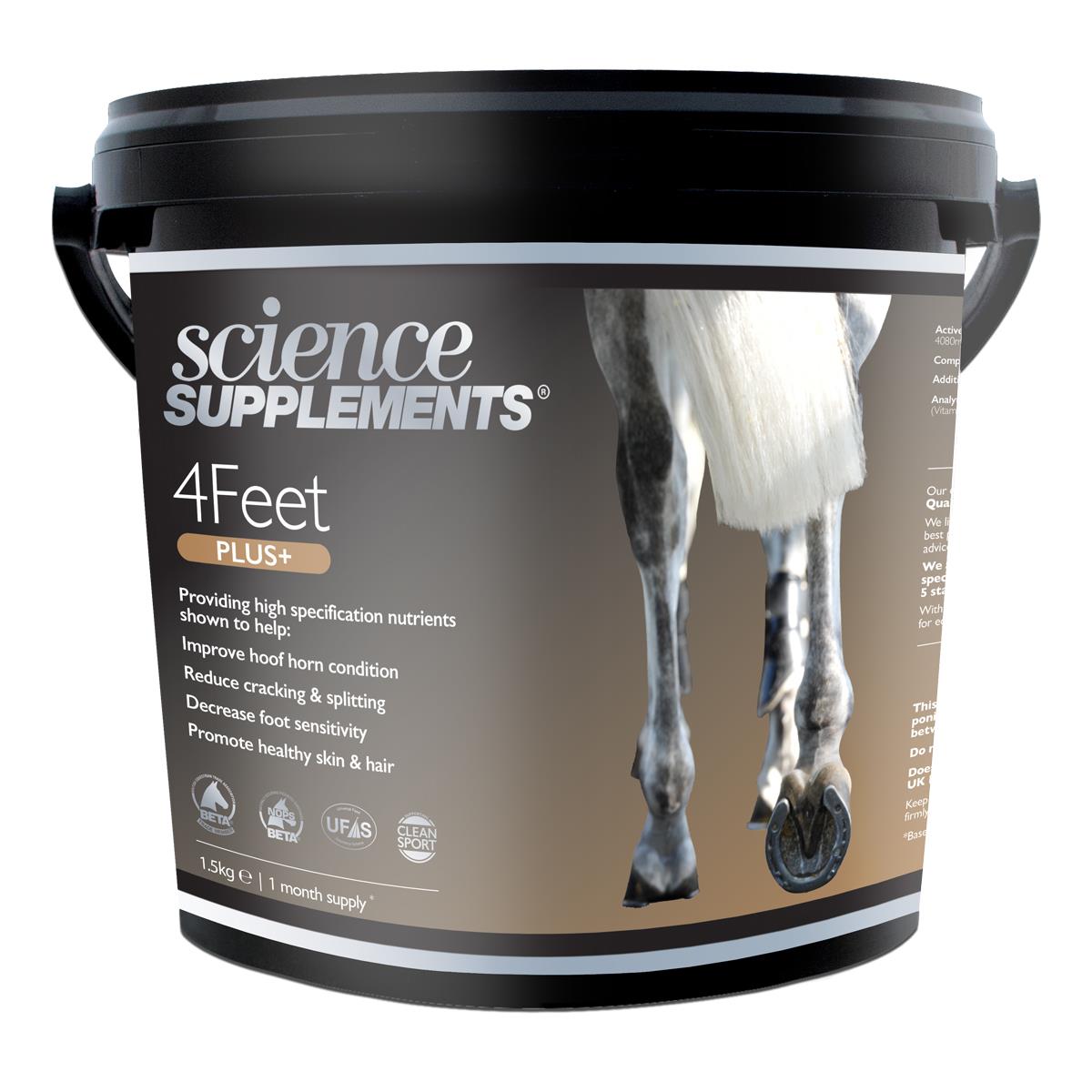 4Feet PLUS+ is a super strength formulation for the most challenged feet. With a combination of seven active ingredients it is designed to be fed to overcome the most challenging of conditions. Once improvements can be seen, then we recommend moving to feeding the standard 4Feet to maintain healthy feet.