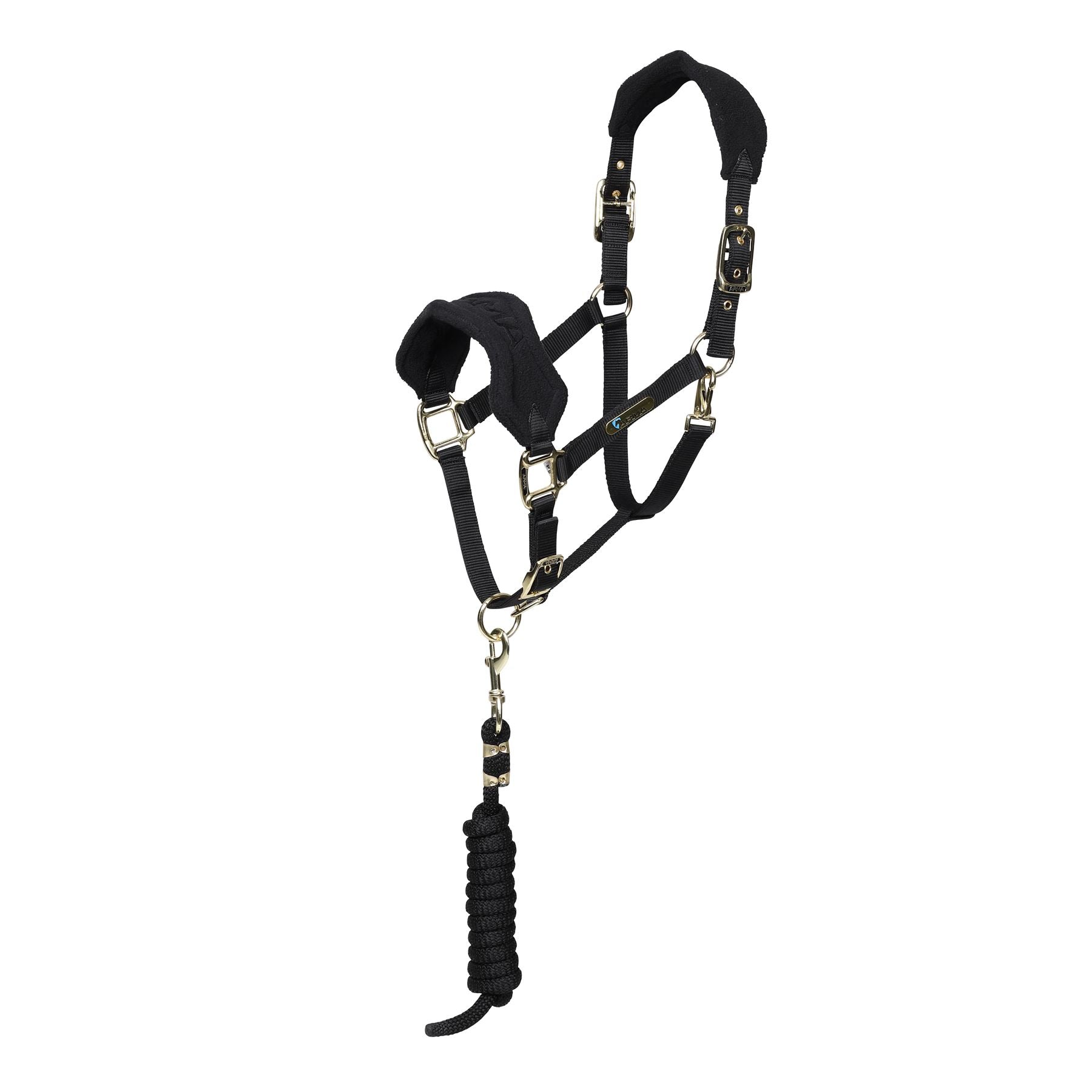 Supplied with a matching lead rope, this smart headcollar is not just about comfort, but also about convenience. It's easily adjustable on both sides of the head and at the nose, facilitating hassle-free use. The innovative clip on throatlash further simplifies the usage. The ARMA plate ensures your headcollar also carries a distinctive look.