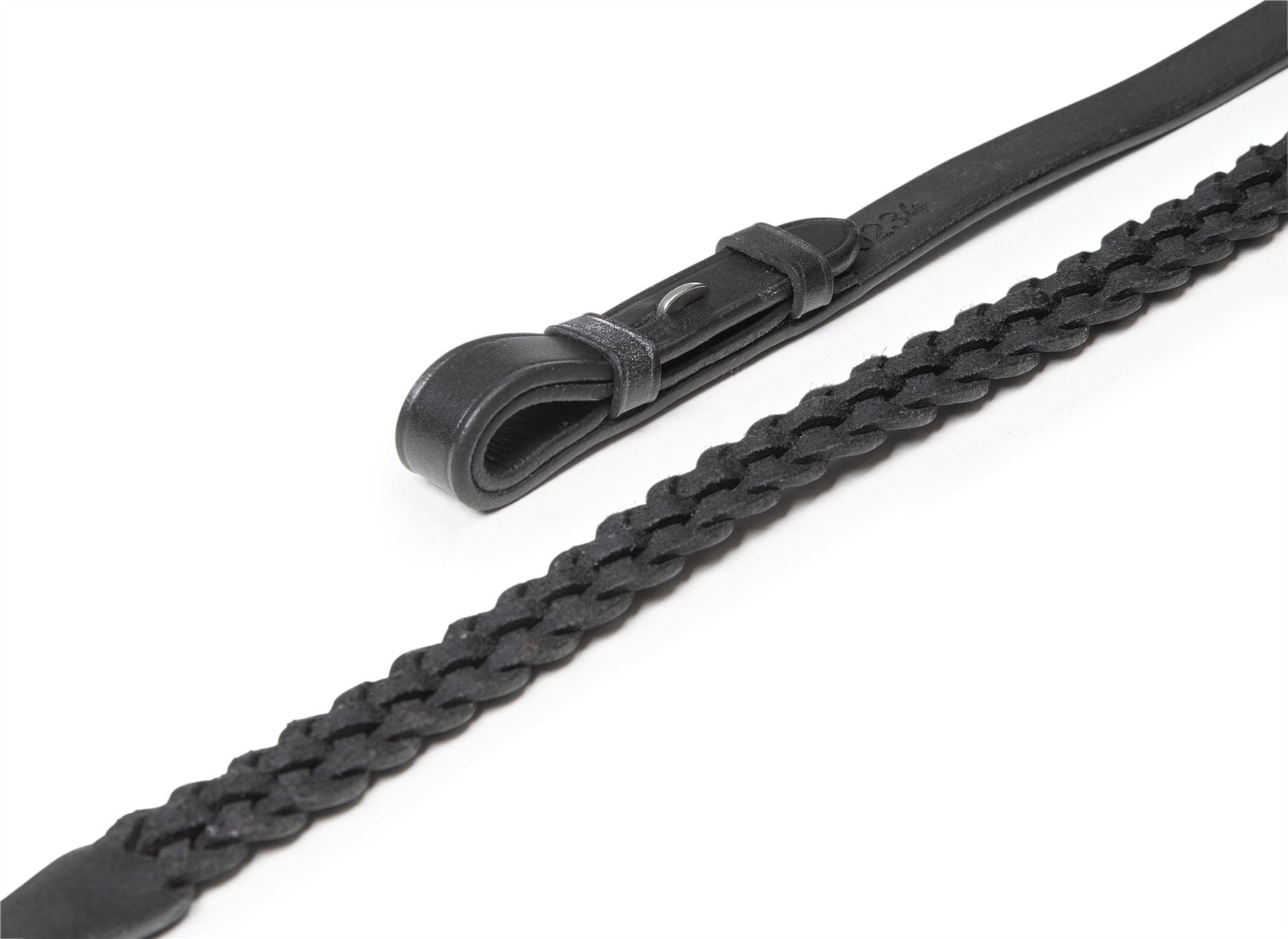 The Just Horse Riders online store presents you the Shires Aviemore Plaited Leather Reins. These reins are a perfect accessory for show ring occasions. Adorned with leather plaiting, they add an aesthetic appeal to your gear. To ensure easy management and durability, they have been crafted with hook stud billets and stainless steel fittings. Discover more from our wide collection of equestrian products. Don't hesitate, buy now and make a stylish statement with your carriage.