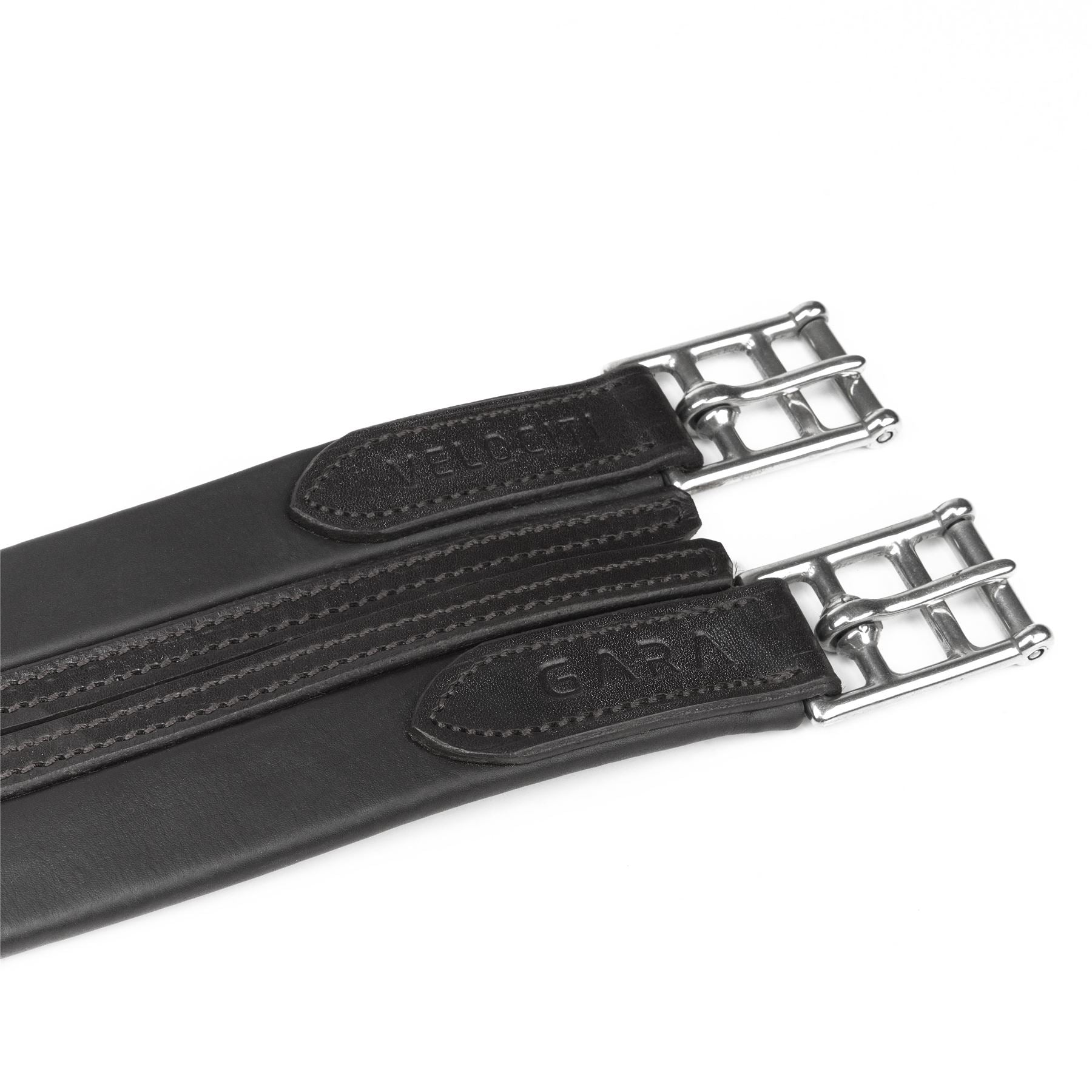 The Velociti GARA atherstone leather girth provides a high level of cushioned comfort to distribute pressure and prevent chafing. The contoured shape enables freedom around the elbows and soft edges prevent pinching. Durable leather is eco-friendly vegetable tanned, hand-stitched with self-colour thread and finished with stainless steel roller buckles. Restrained design gives Velociti GARA leatherwork enduring appeal.