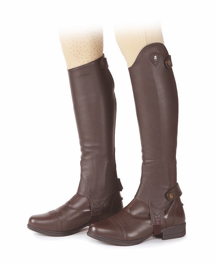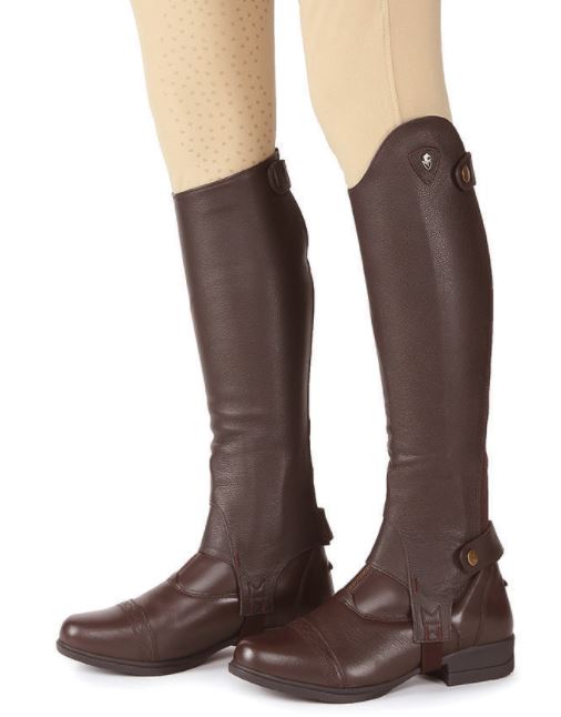 Upgrade your riding gear with the high-quality Shires Moretta Leather Gaiters - Adults. Crafted from premium soft grain leather, these gaiters provide the elegant look of long riding boots, while delivering the comfort and flexibility only gaiters can offer. The rear elastic calf panels along with the supple leather promise a snug fit that seamlessly adapts to your leg. Adding a touch of grace, the dressage cut tops provide a neat, streamlined silhouette. Further, the gaiters feature full-length zips that make them easy to wear, freeing you to focus on your ride. Plus, the gaiters also include elastic foot stirrups and stretch zip tidy straps for a secure, uninterrupted riding experience. Bound edges complete the lasting build of the gaiters, marking a solid addition to your riding essentials. Just Horse Riders brings to you equipment that matches your riding passion with unmatched style and practicality. So why wait? Buy now and elevate your riding elegance.