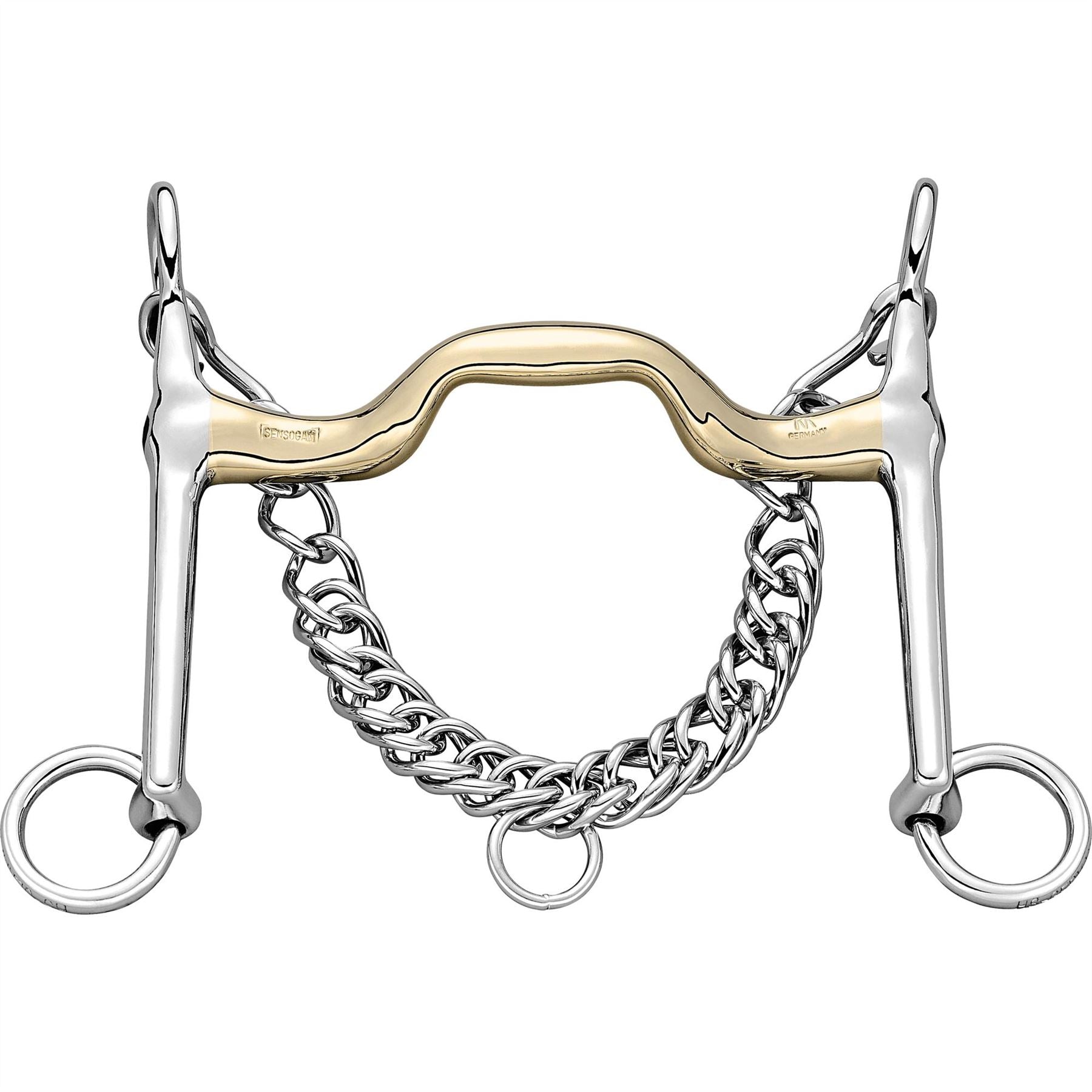 KK Dressage bit 18 mm - Sensogan mouth piecehigh port- forward angled to avoid palate pressurerelieves the middle of the tonguehigher poll pressure due to 7 cm cheeks- leverage effect slightly delayedWhere the canary is strapped in- the horse's mouth is narrower- which is why the canlar should usually be chosen 1/2 to 1 cm smaller than the underlay.It is important that the side parts of the candied close close to the corners of the mouth.The chin chain should be strapped in such a way that the canother can be accepted up to an angle of approx. 45�.