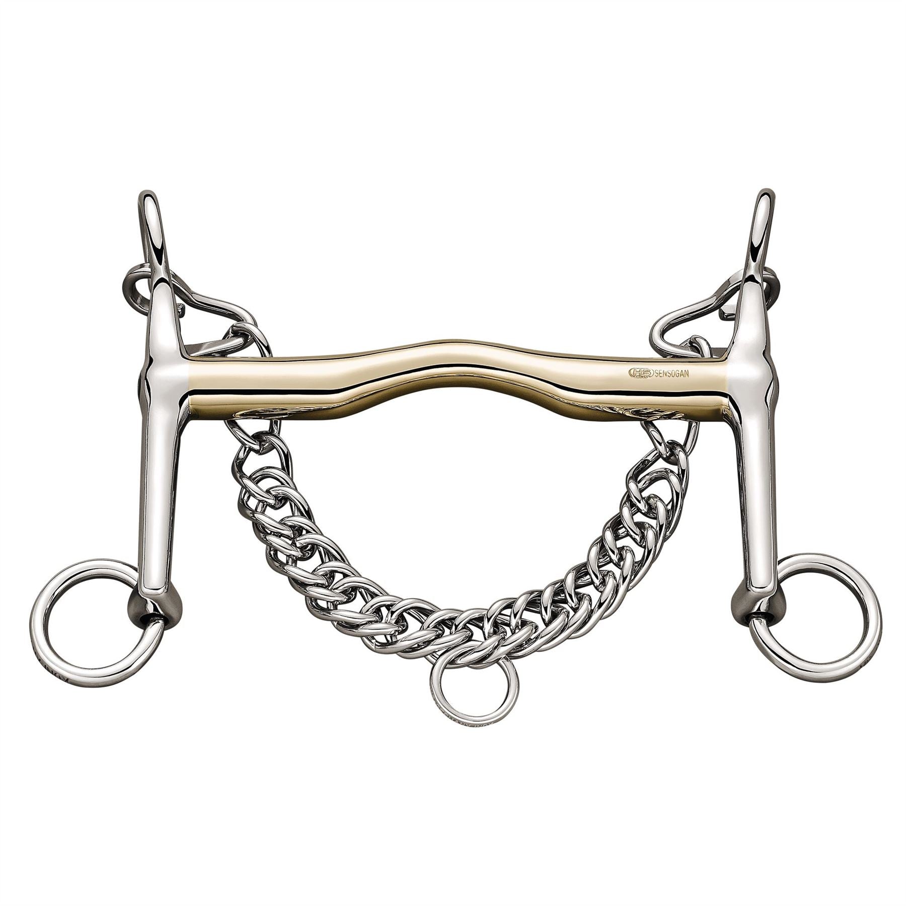 This bit uses a Sensogan mouthpiece, which encourages salivation and supports relaxation. Many riders find that horses working in a double bridle respond better when the bradoon lies quietly in the mouth, making designs like this a popular choice among dressage enthusiasts.
