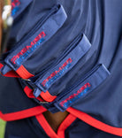 Cotton-feel technical polyester Breathable fabric Long integrated neck cover offers more protection whilst grazing Double locking neck cover straps Neck cover lined with non-static antibacterial breathable polyester lining over mane Double lined over wither and shoulder with non-static antibacterial polyester lining Anti-Static treated Shaped, designed and contoured over the wither and rump areas Extra high elasticated shoulder gusset (British design registration 4 010 772) Quick release chest clips Cross surcingles Supersize tail flap - double thickness Stainless steel hardware PVC coated tail strap Not waterproof The Combo Stable Sheet comes inside a complimentary, reusable zip-fastened storage bag