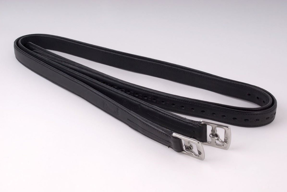 54" German leather bonded stirrup leathers. Quality leather wrapped over nylon for strength. Additional holes for more accurate sizing. Nylon will not stretch with use.