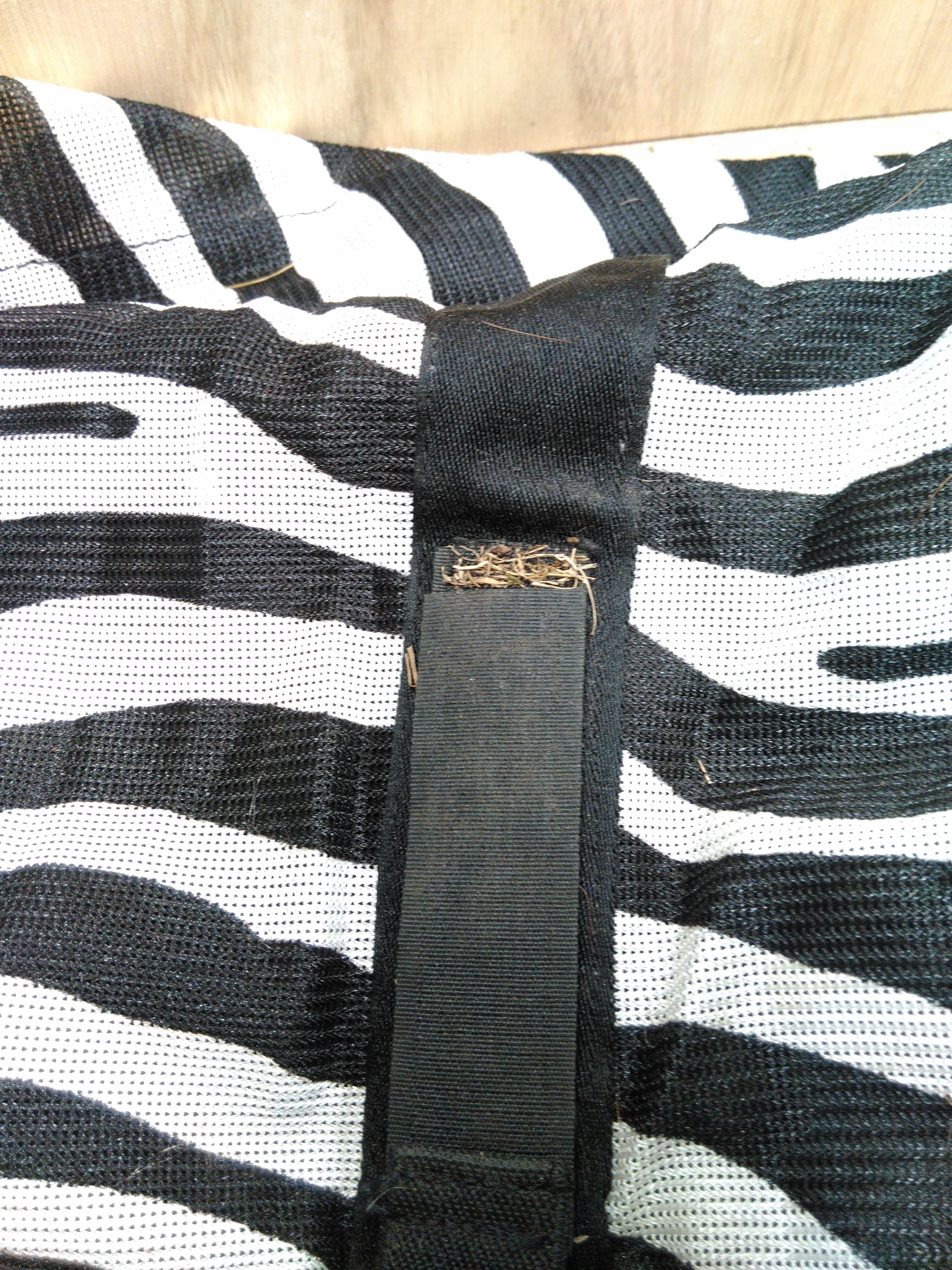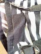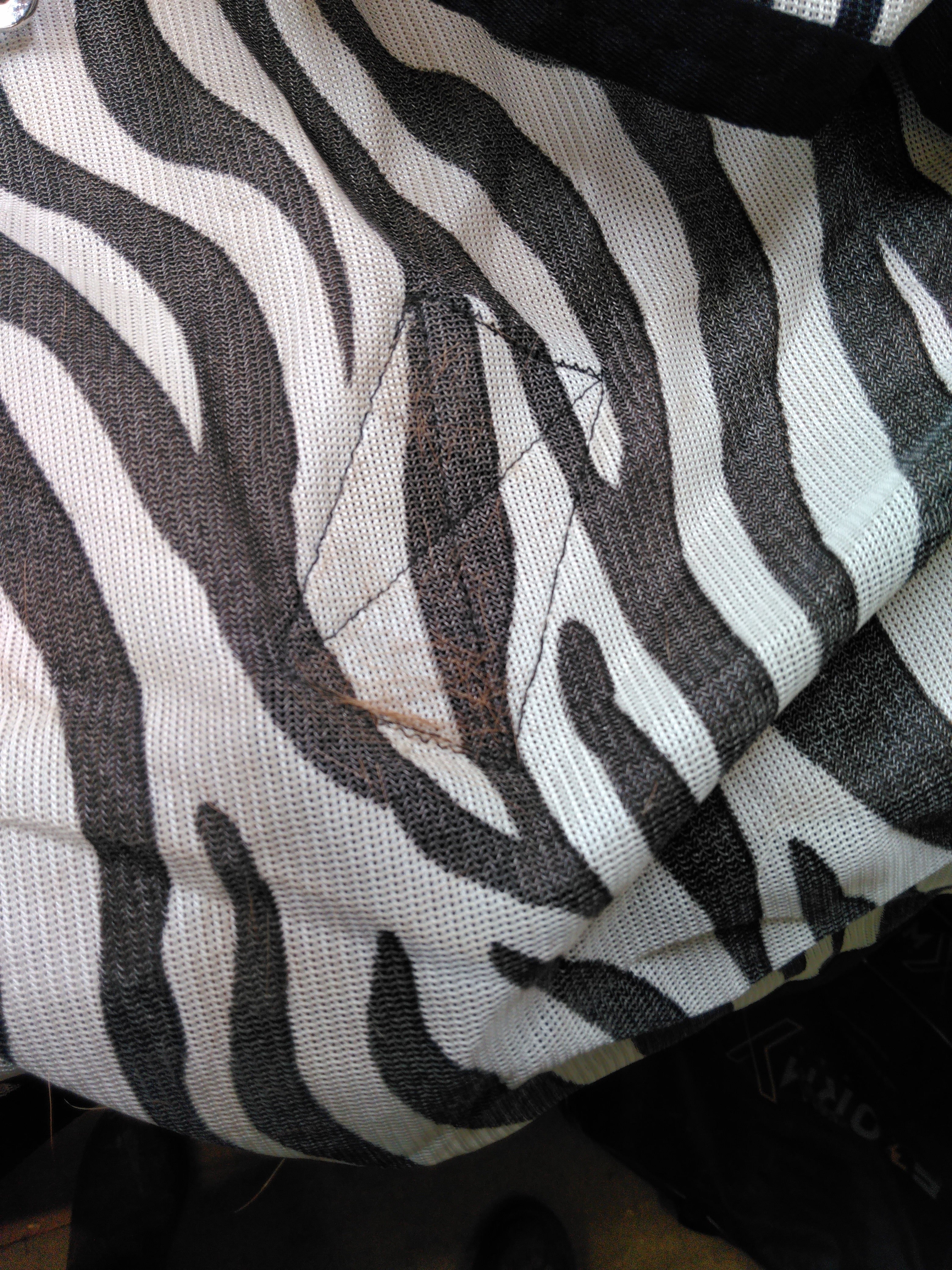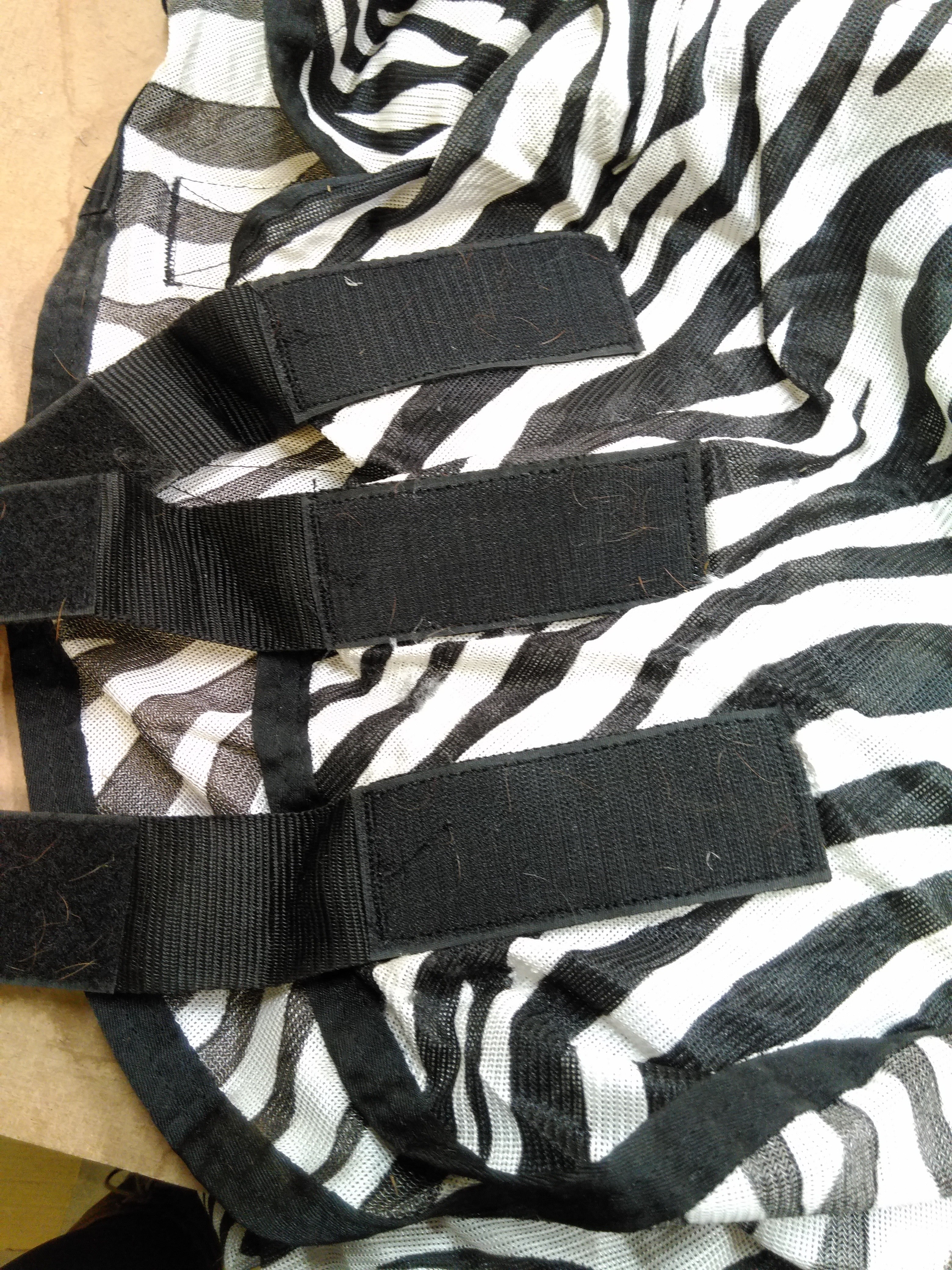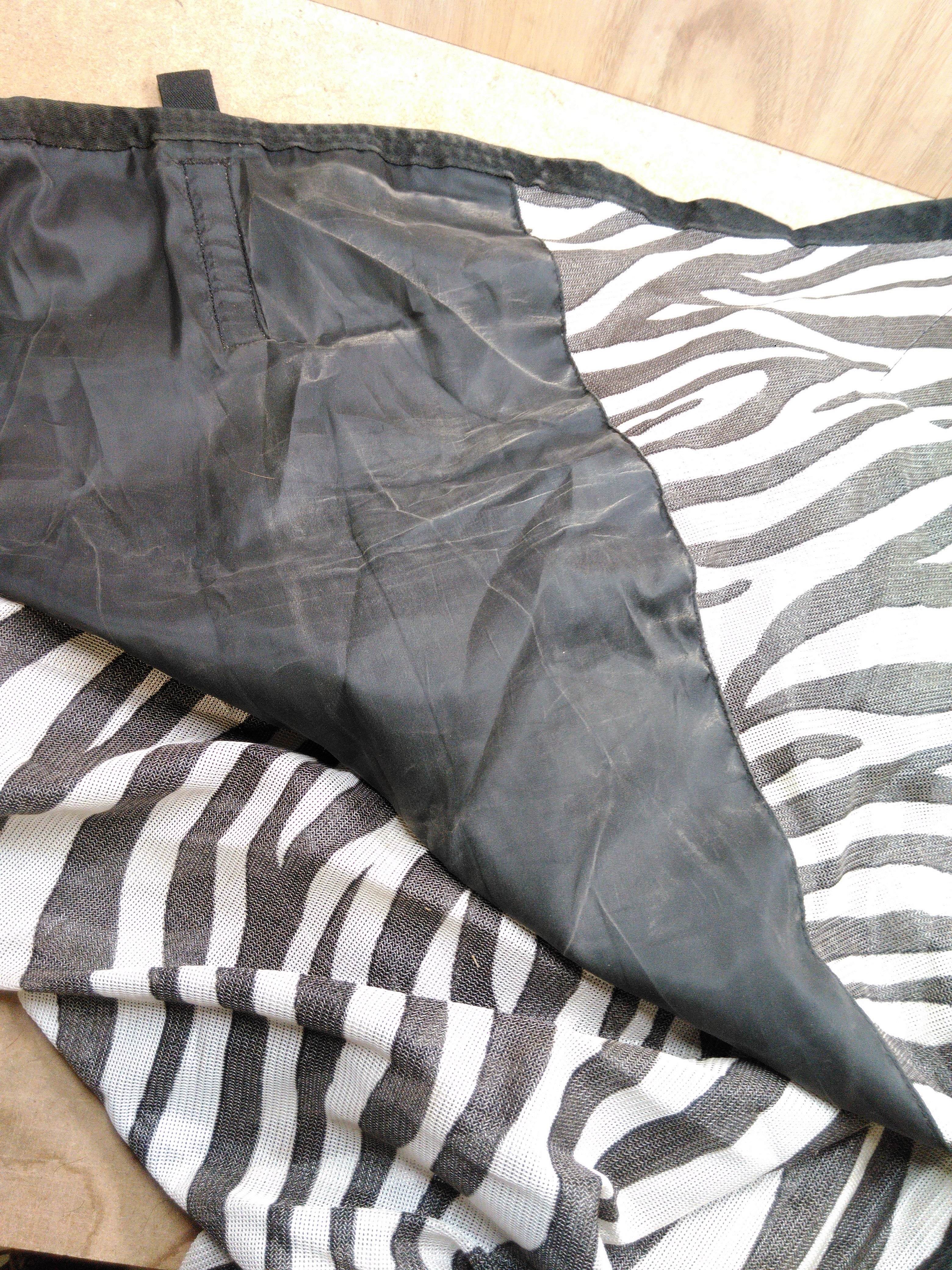 The StormX Original Zebra Print Fly Rug is designed to provide protection against flies and insects while ensuring comfort for your horse. This stylish black and white rug features a breathable fabric that helps keep your horse cool and comfortable during warmer months. Despite some light marks and soiling, it remains fully functional for yard use or casual outings.