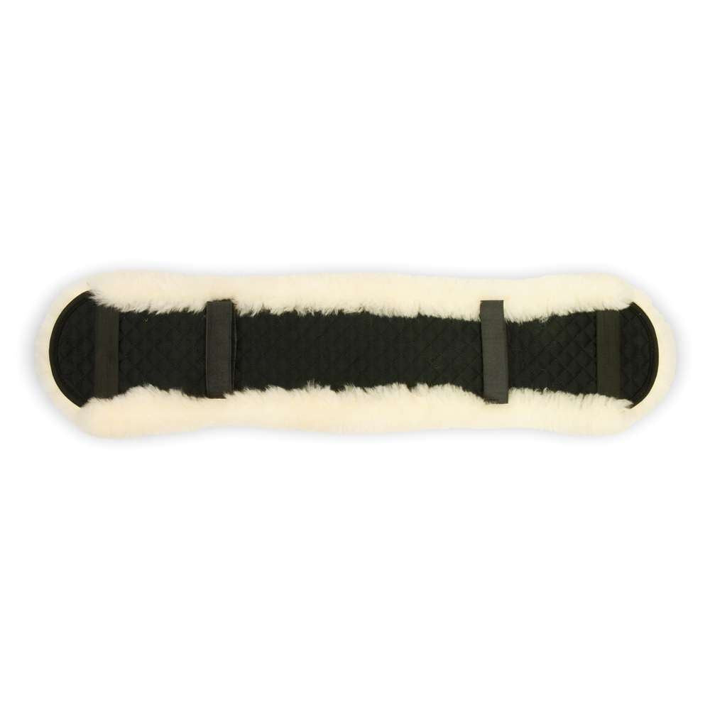 Shaped Dressage Girth Sleeve Brand new shaped girth sleeve offers a closer fit and 100% Merino lambswool edges to protect from rubbing and chafing. KM Elite cotton quilting on the reverse with adjustable elastic and Velcro straps. The sheepskin encourages muscle relaxation and improved blood circulation. Colour: Black/Natural Size: One Size fits all Dressage (length 29.5 , Width (inc sheepskin) 7.5 ) Product ref: R10SDBN