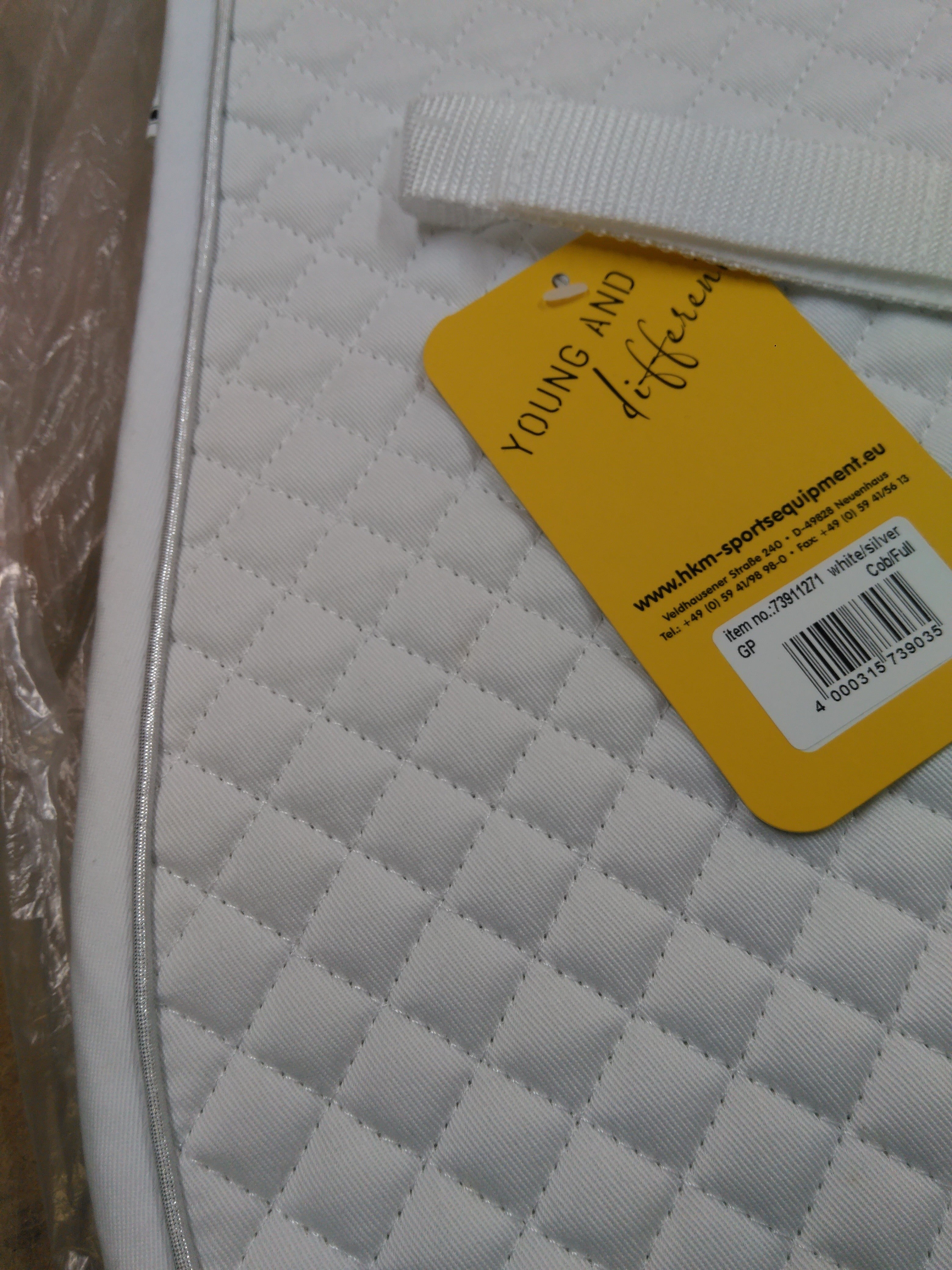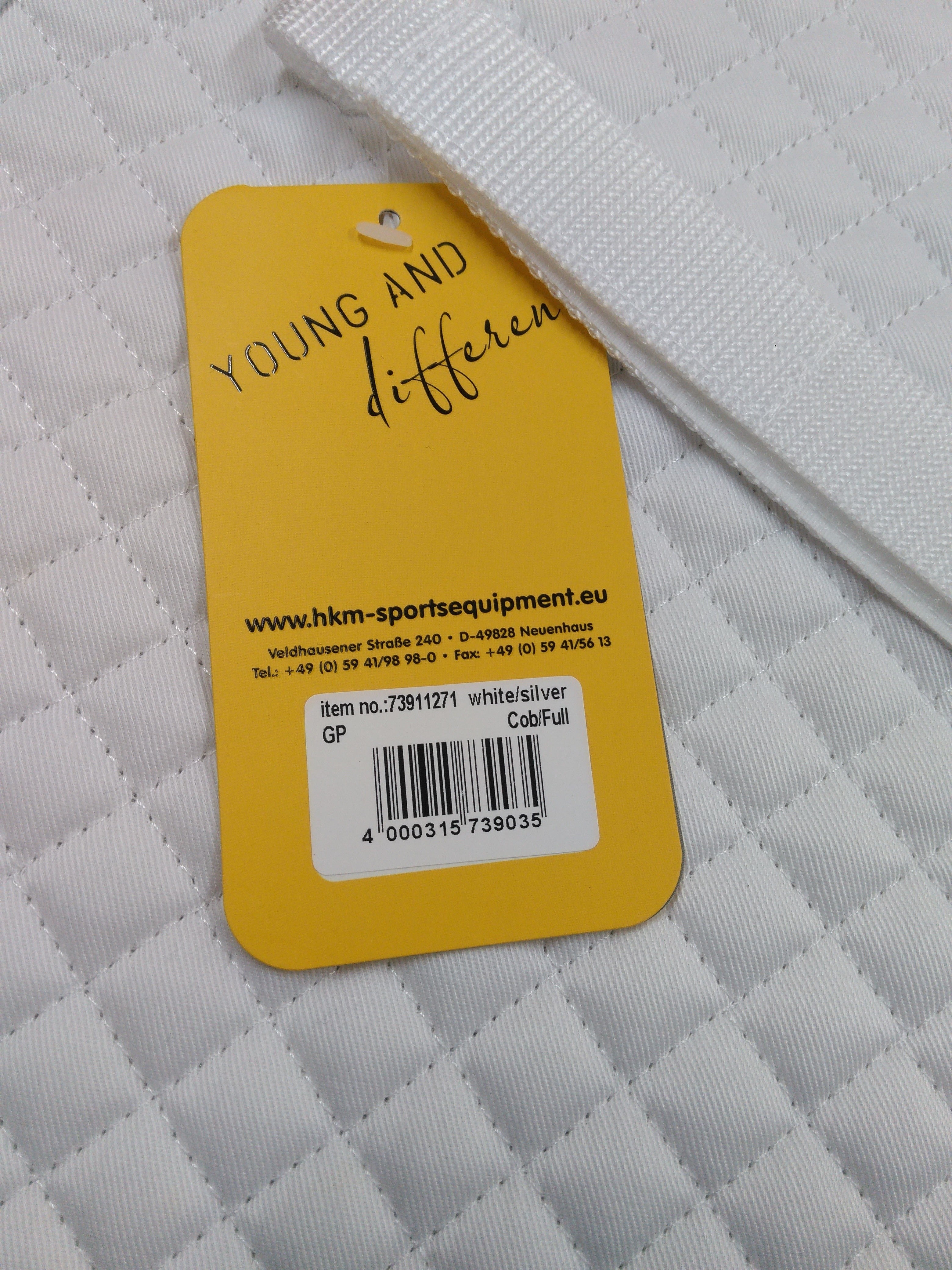 The HKM Saddle Cloth with Piping is designed for general purpose use, offering both style and comfort for your horse. This elegant white and silver saddle cloth is suitable for Cob/Full sizes, providing a perfect fit and excellent cushioning during rides. Ideal for competitions or everyday use, it combines functionality with a classic aesthetic.