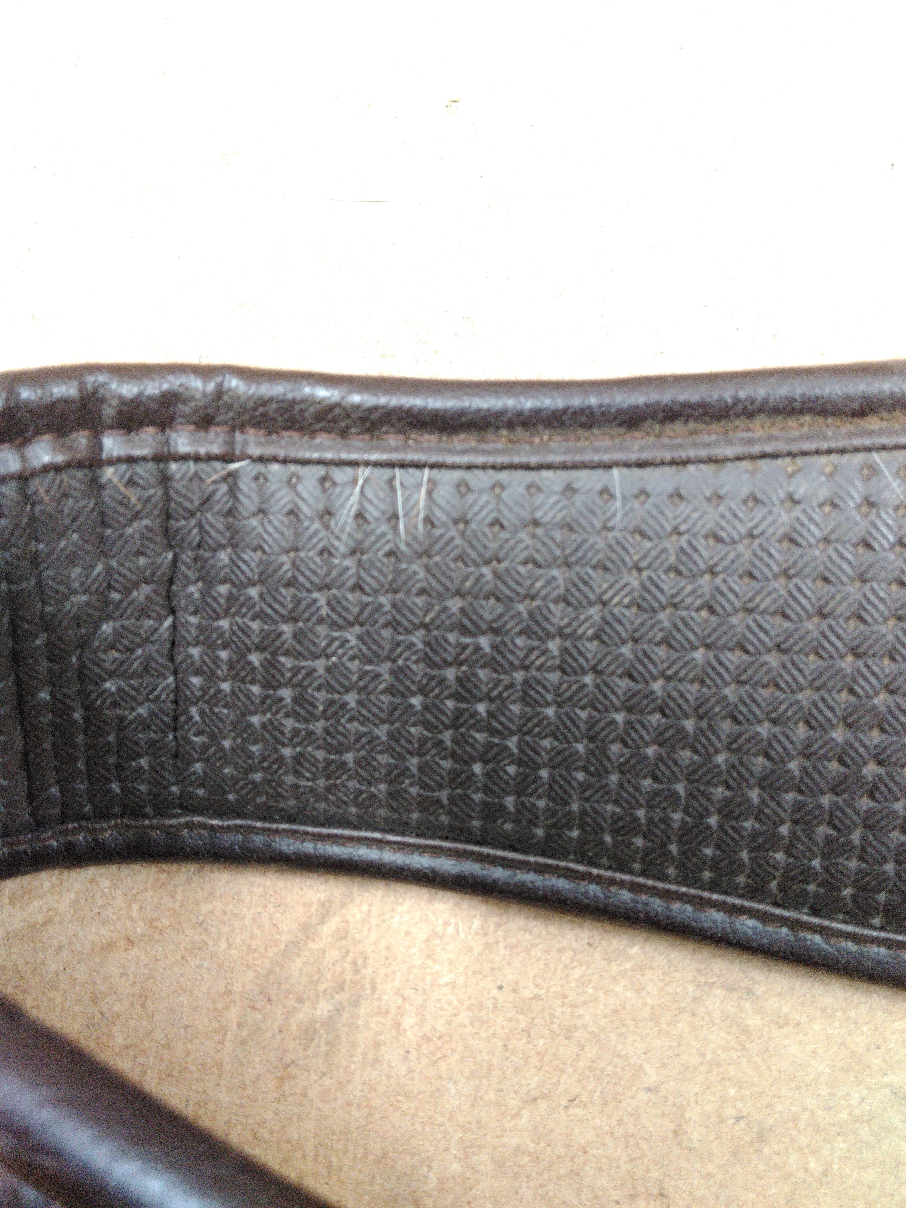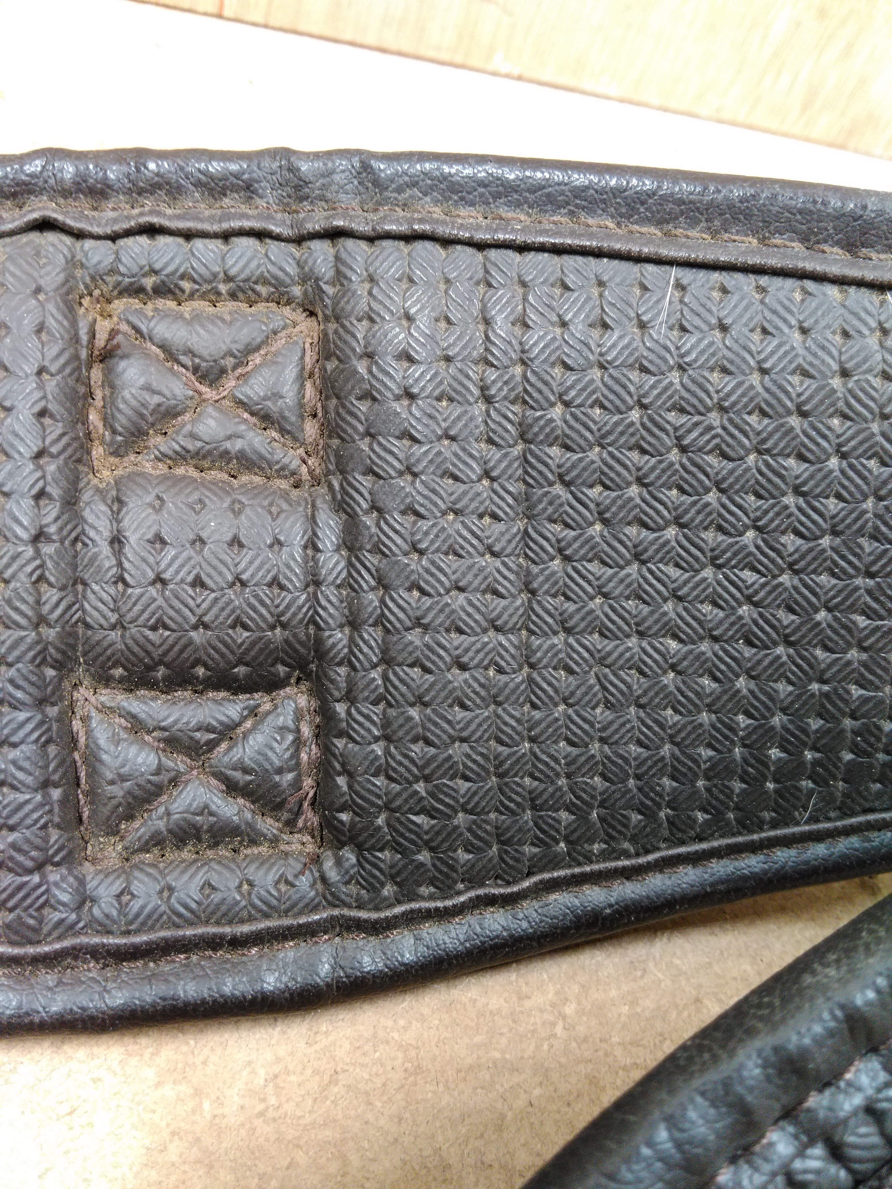 Condition: Pre-owned with visible wear; may benefit from a clean or simple repair (e.g., loose stitching, scuffed finish).