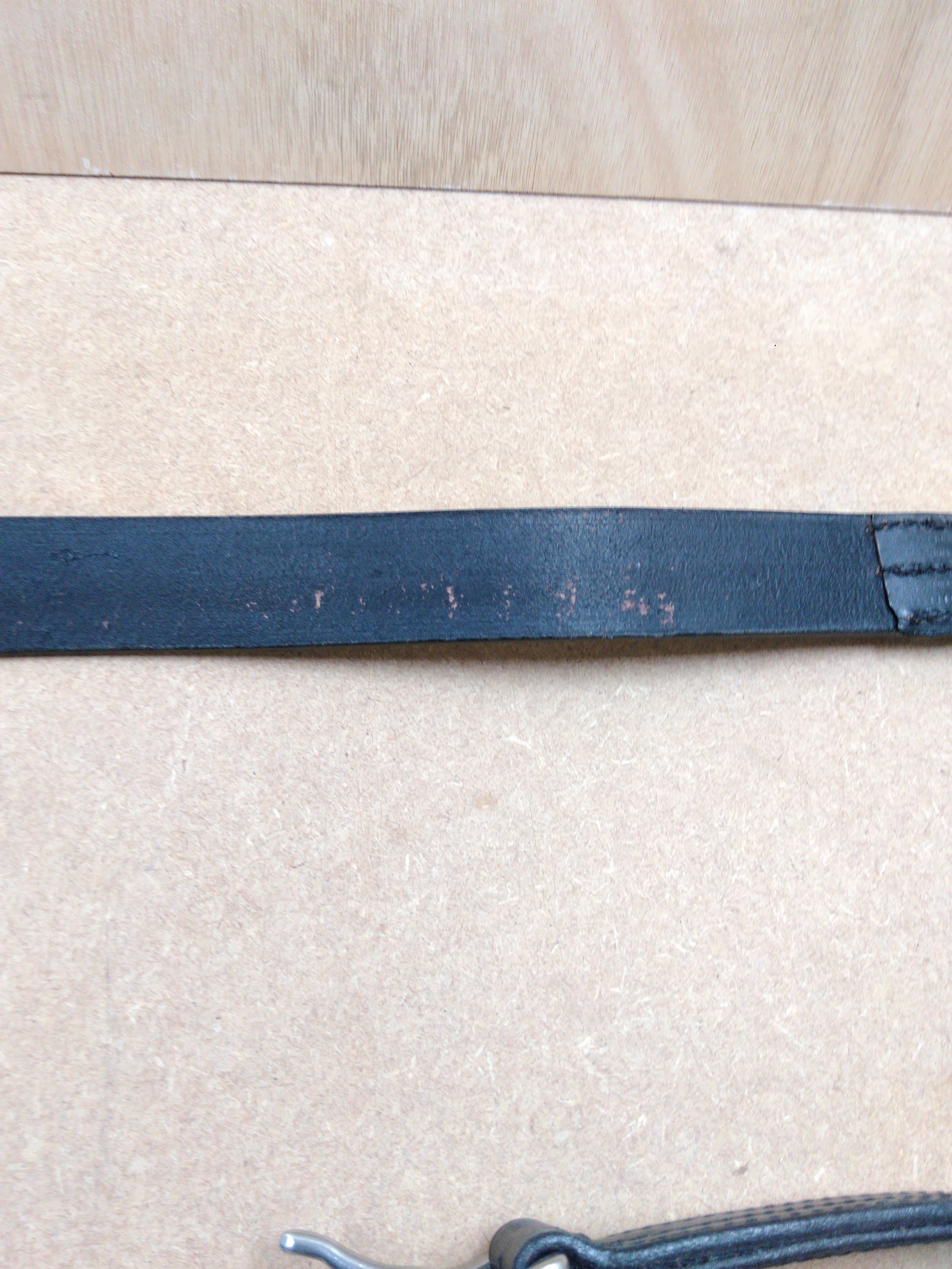 The Black Stirrup Leathers are essential for securing your stirrups to the saddle. These 54" leathers show significant signs of use, making them ideal for yard work or as spares. While they remain functional, their cosmetic condition reflects their previous use.