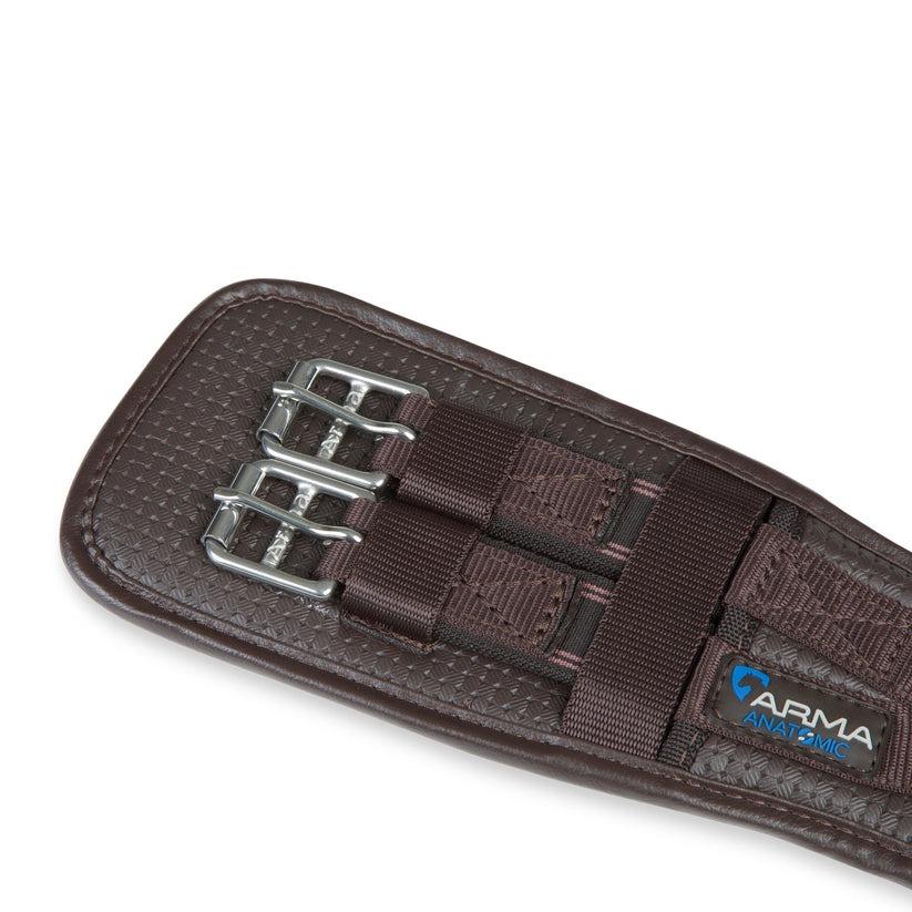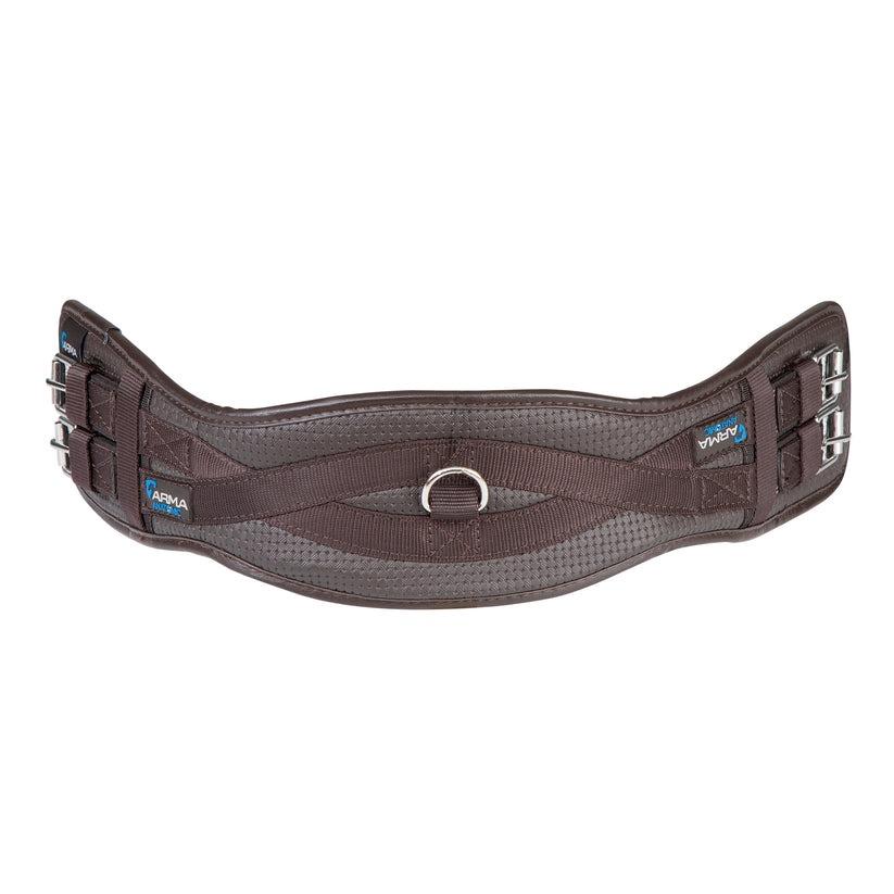 The ARMA anti-chafe dressage girth is made from durable waffle material that resists moisture build up to protect against rubbing and galls. The textured surface increases airflow to help control excessive sweat build up. Moisture resistant fabric stays soft and flexible, gliding over the skin without friction to avoid chafing. Anatomic contour shaping provides unrestricted movement around the elbows and better pressure distribution. Flexible, stretch resistant and wipe clean, reinforced with non-stretch nylon webbing. Pressure alleviating elastic inserts at both ends. Stainless steel roller buckles and fittings for long lasting performance.
