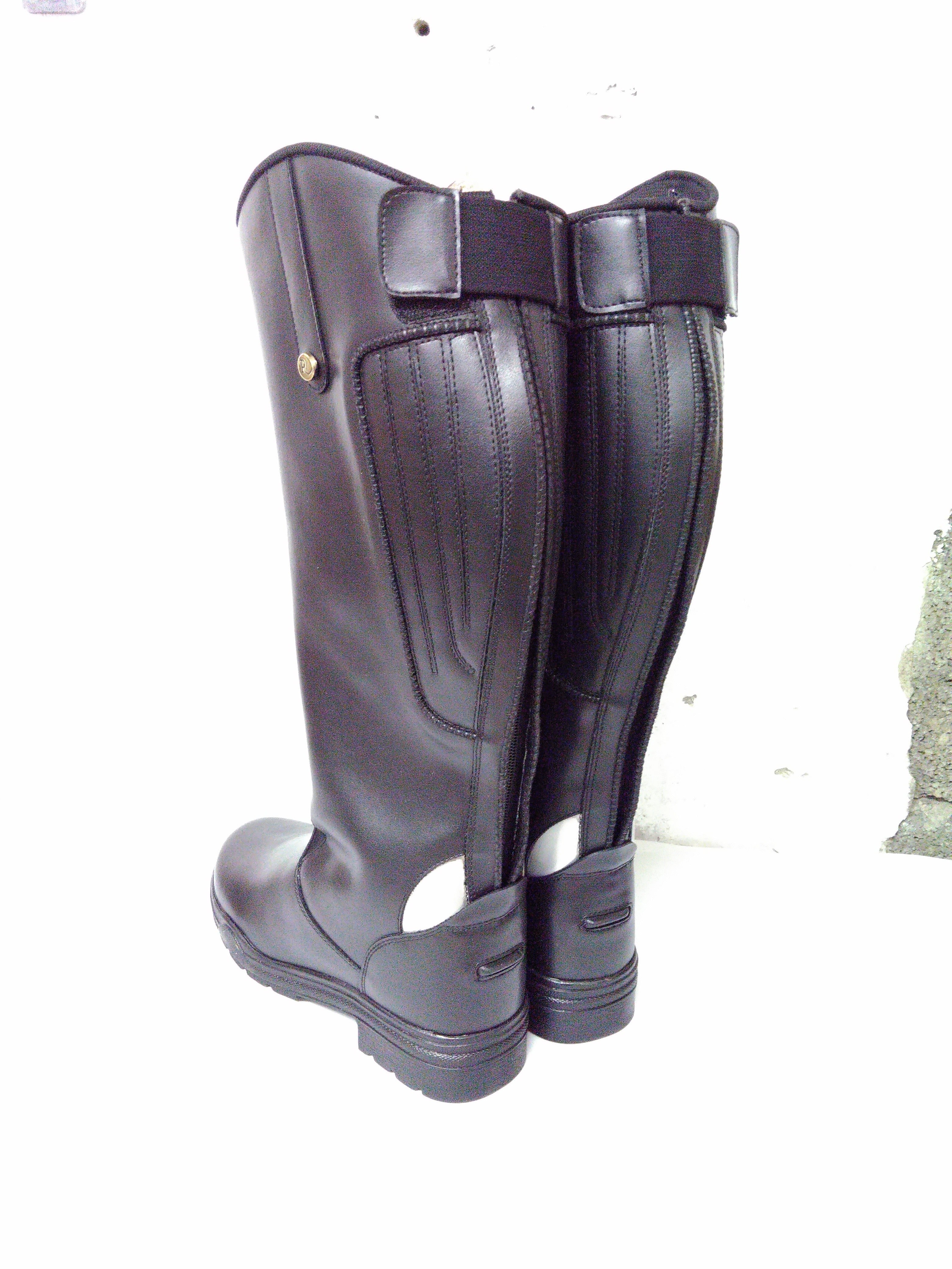 The Rhinegold Nebraska Synthetic Long Boot is designed for comfort and style, featuring a wide leg for a perfect fit. Made from durable synthetic materials, these boots are ideal for both riding and everyday wear. Although the box is damaged, the boots themselves are brand new and ready for use.