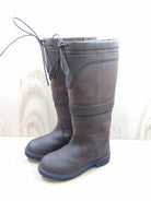 The Englander Equestrian Hera Waterproof Leather Country Riding Boots are designed for comfort and durability, perfect for country riding. These boots feature a waterproof leather exterior, ensuring your feet stay dry in various weather conditions. Despite minor scuffs, they remain fully functional and stylish for your equestrian needs.
