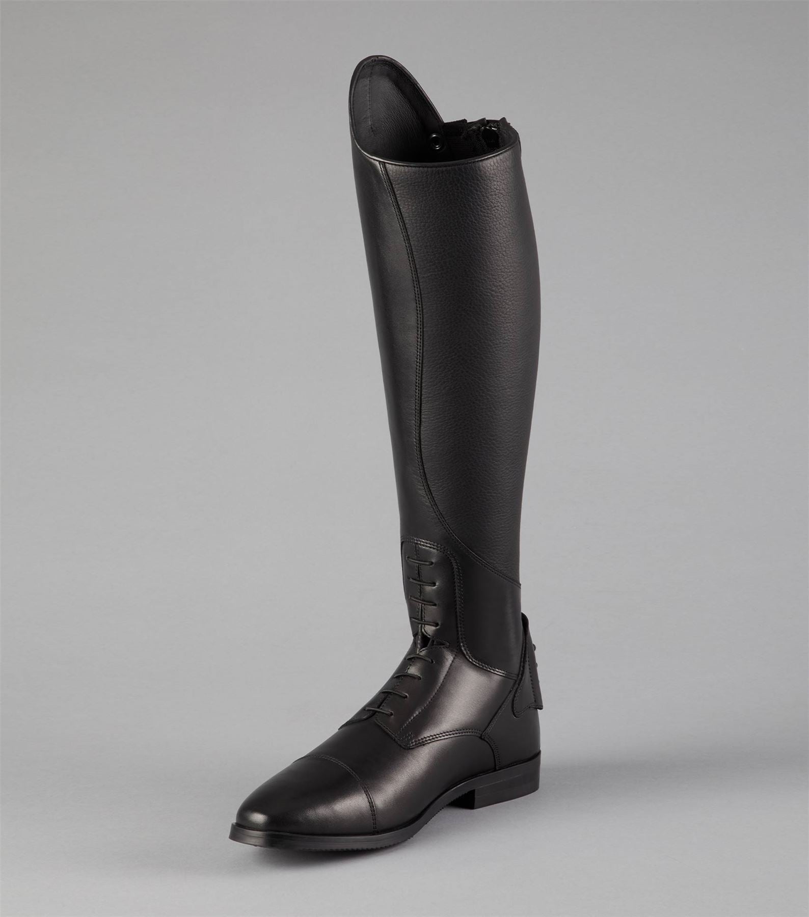 Premium grade leather Field boot design - elasticated laces Round toe shape Discreet comfort fit elasticated stretch panel Rear spur rests Premium YKK zip Leather pull cord Comfort insole Press stud spur guard Premium handmade sole PE branded badge