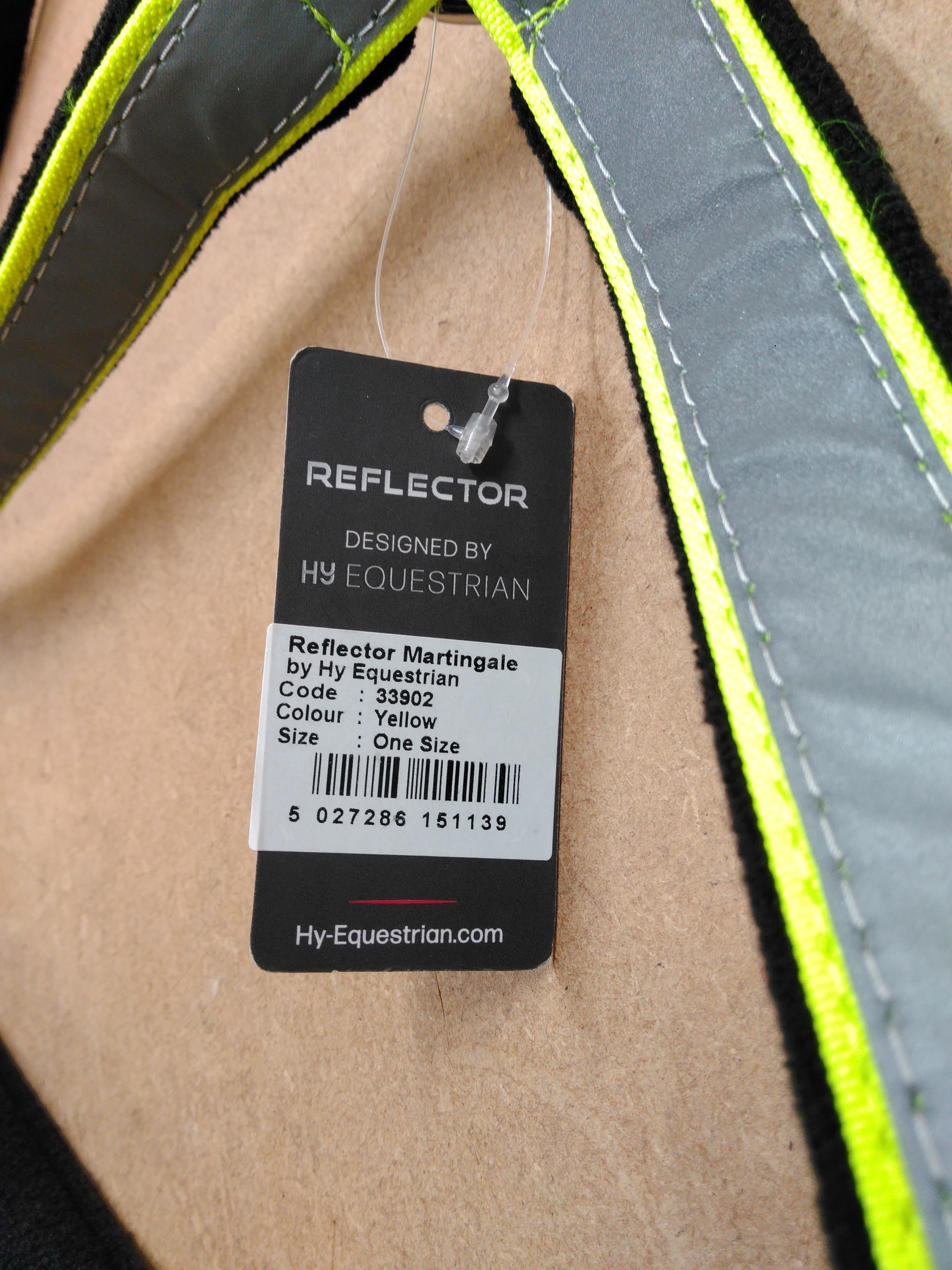 The Hy Equestrian Reflector Martingale is designed to enhance visibility during rides, ensuring safety in low-light conditions. This one-size martingale features a bright yellow colour for high visibility and is perfect for use in various equestrian activities. Although the adjuster is missing, the item remains unused and ready for your equestrian needs.